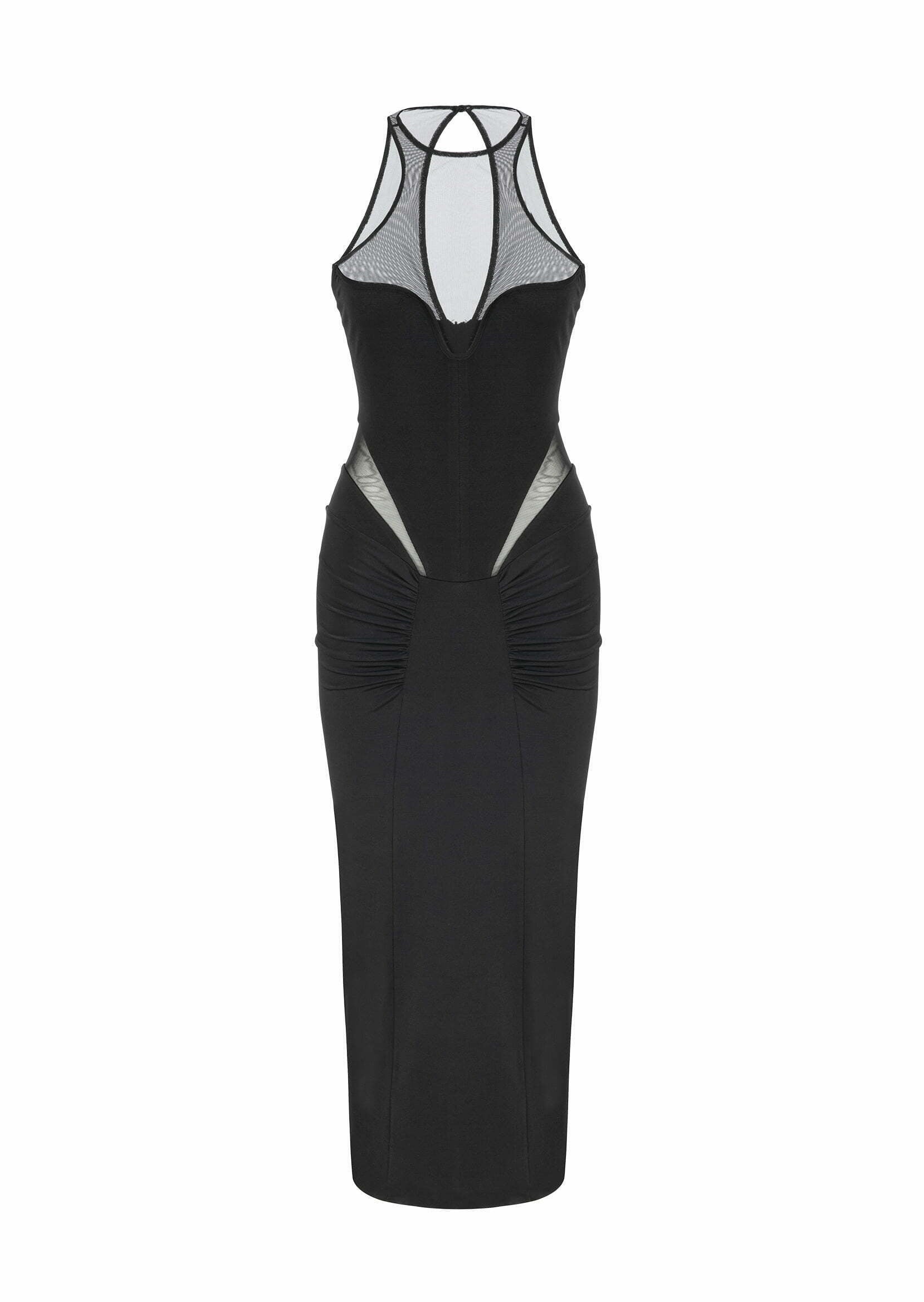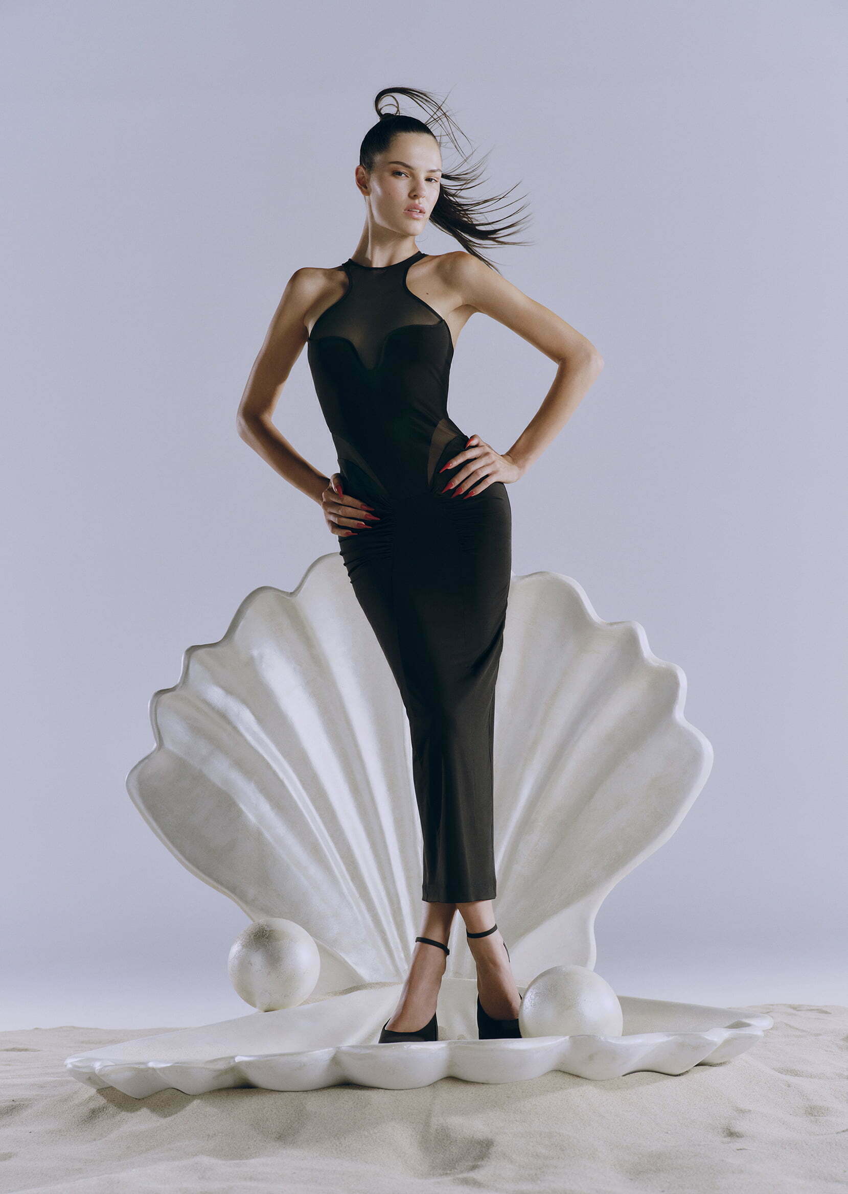 The “Alda” dress is the versatile representative of feminine sihouette with its halter neckline and heart shaped bustier form. This perfect combination of sheer fabric and draped details, leaves a mysterious mark behind you.