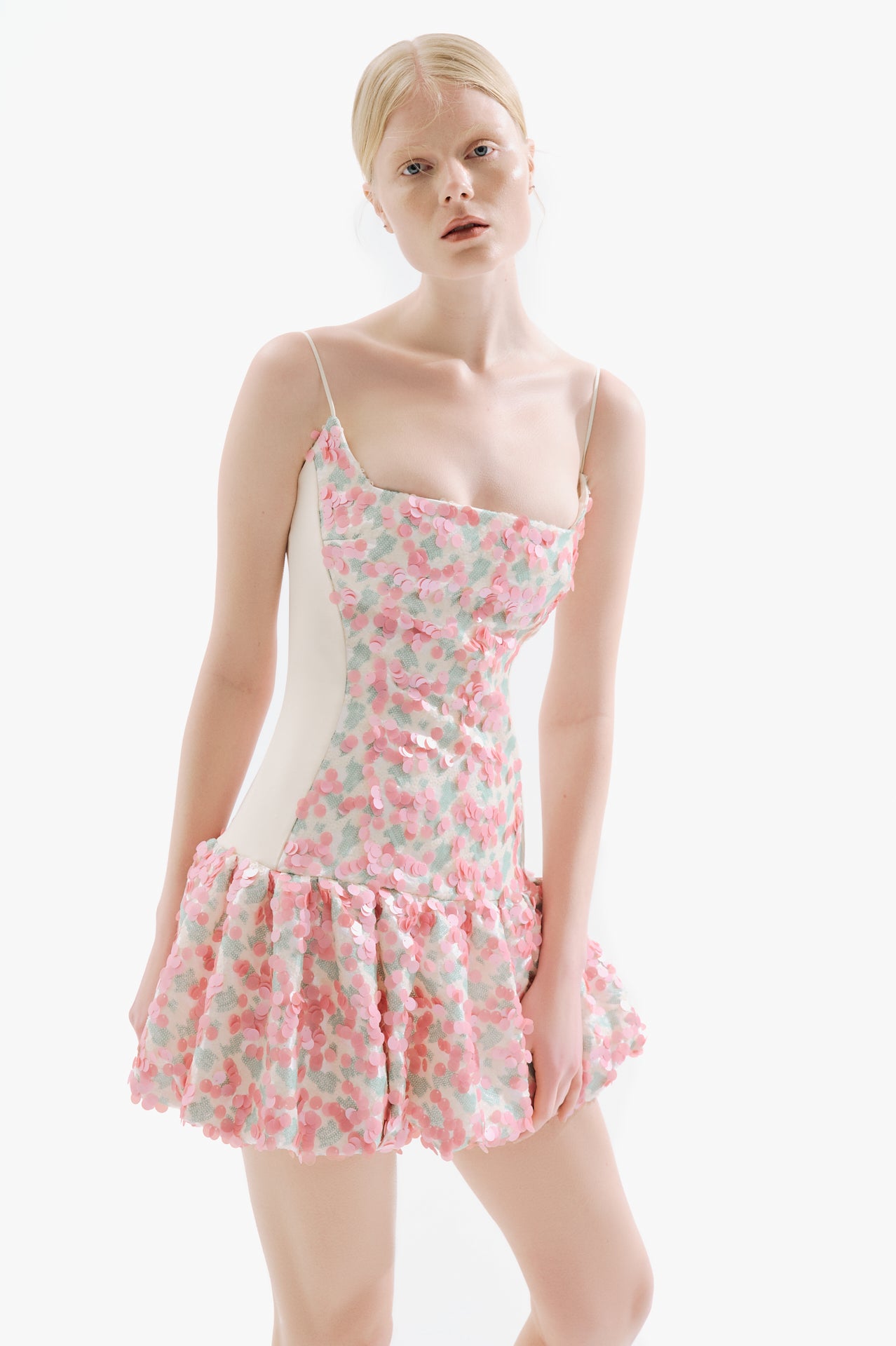 Alice embodies a playful spirit with its flirtatious ruffles and feminine design. Its light, airy texture and fun detailing make it perfect for a light-hearted event or a sunny day outing, where charm meets comfort.