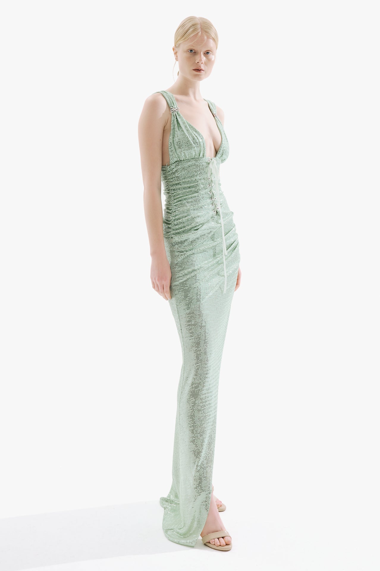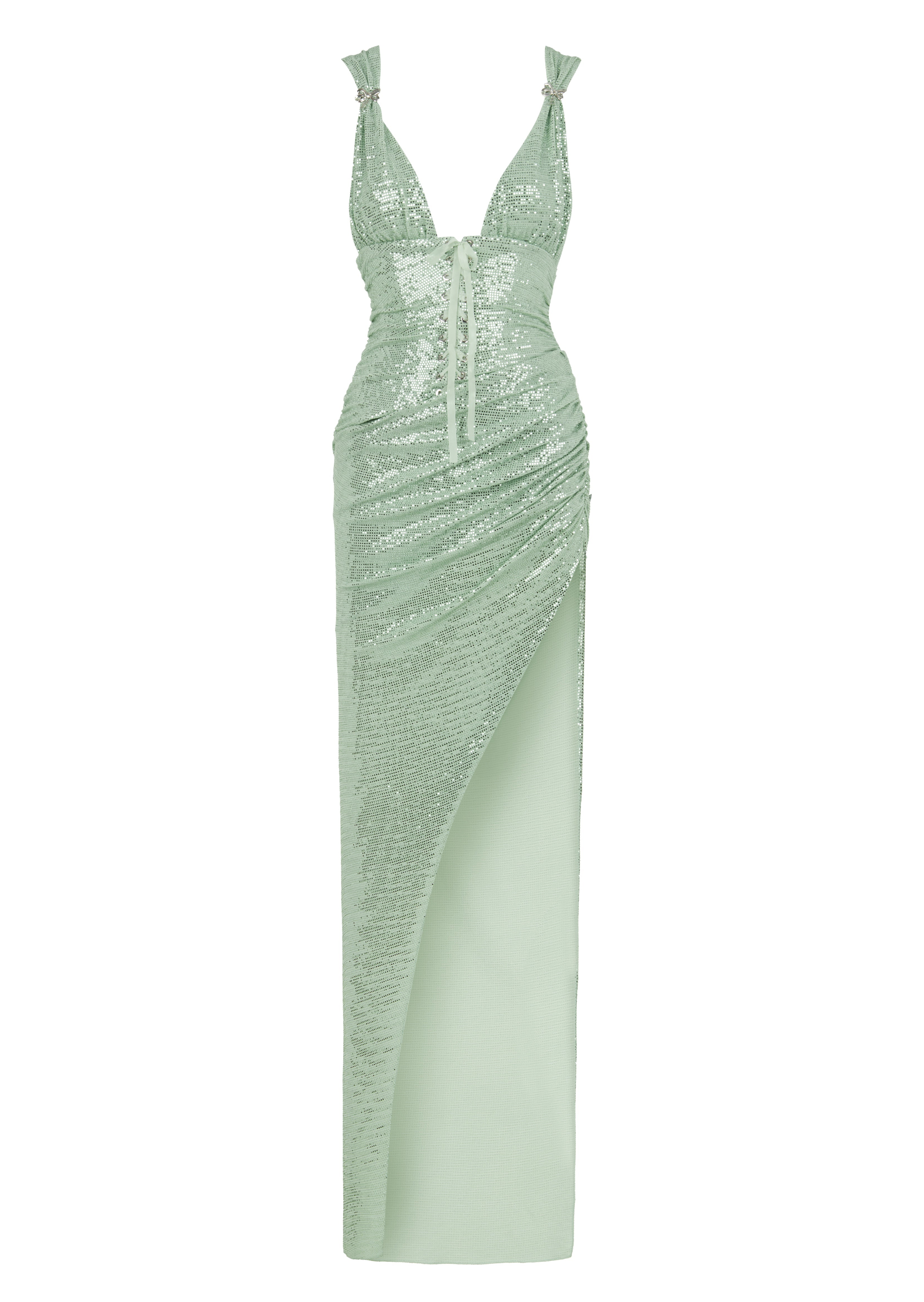 The Ary dress is a bold yet elegant choice. Its flattering fit and deep neckline combine with delicate details to create a sophisticated, daring look. Perfect for those seeking understated elegance with a touch of boldness.