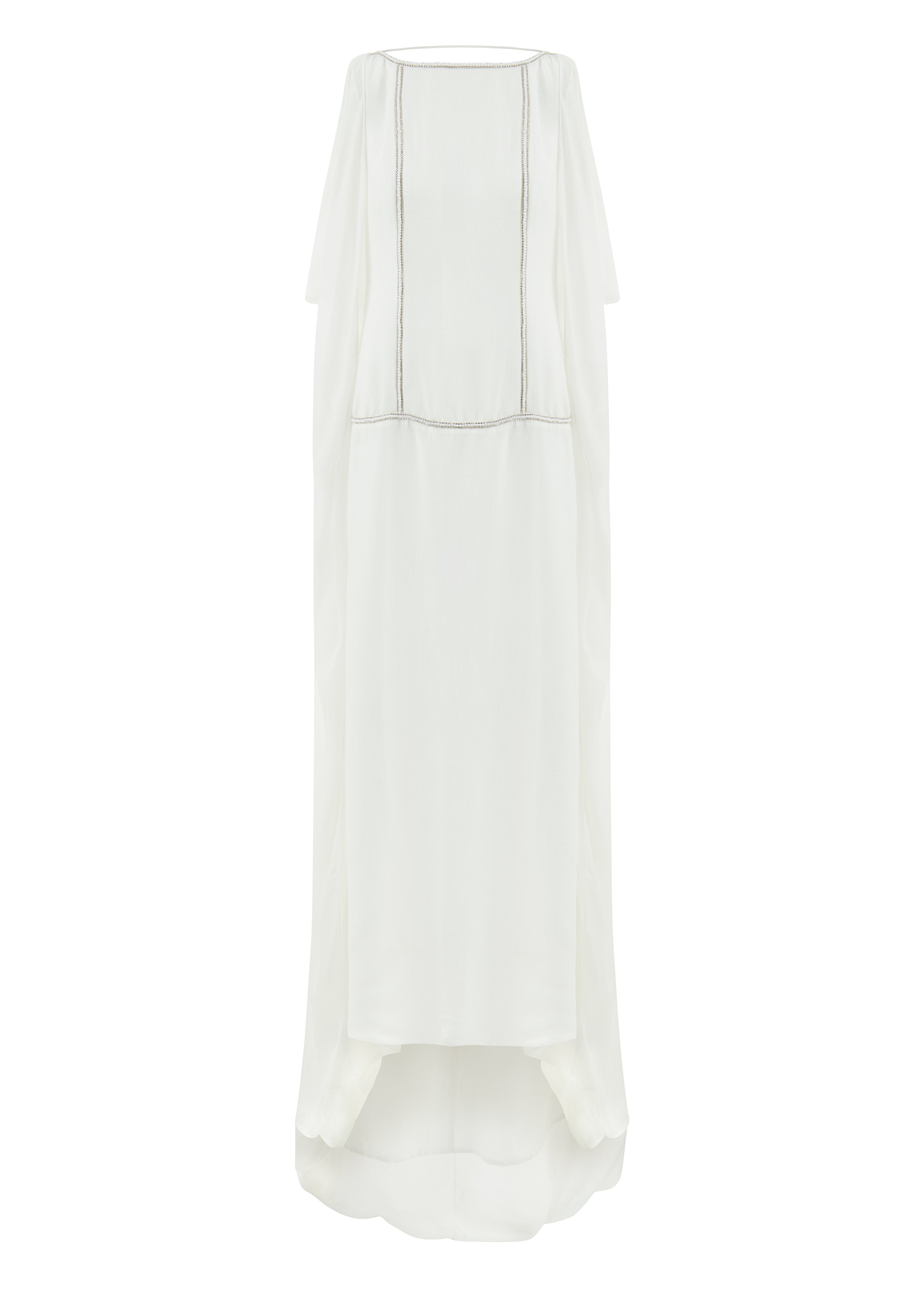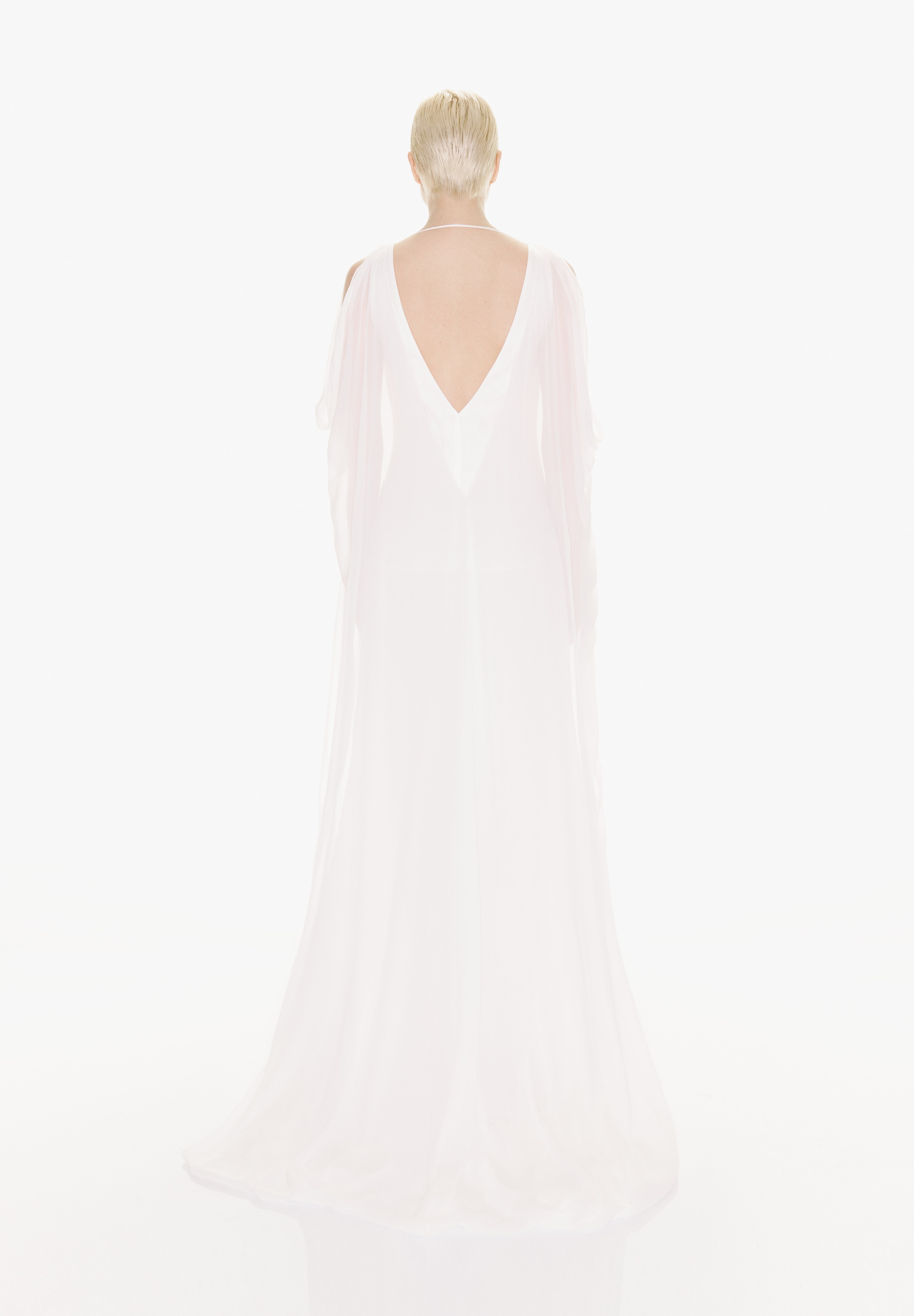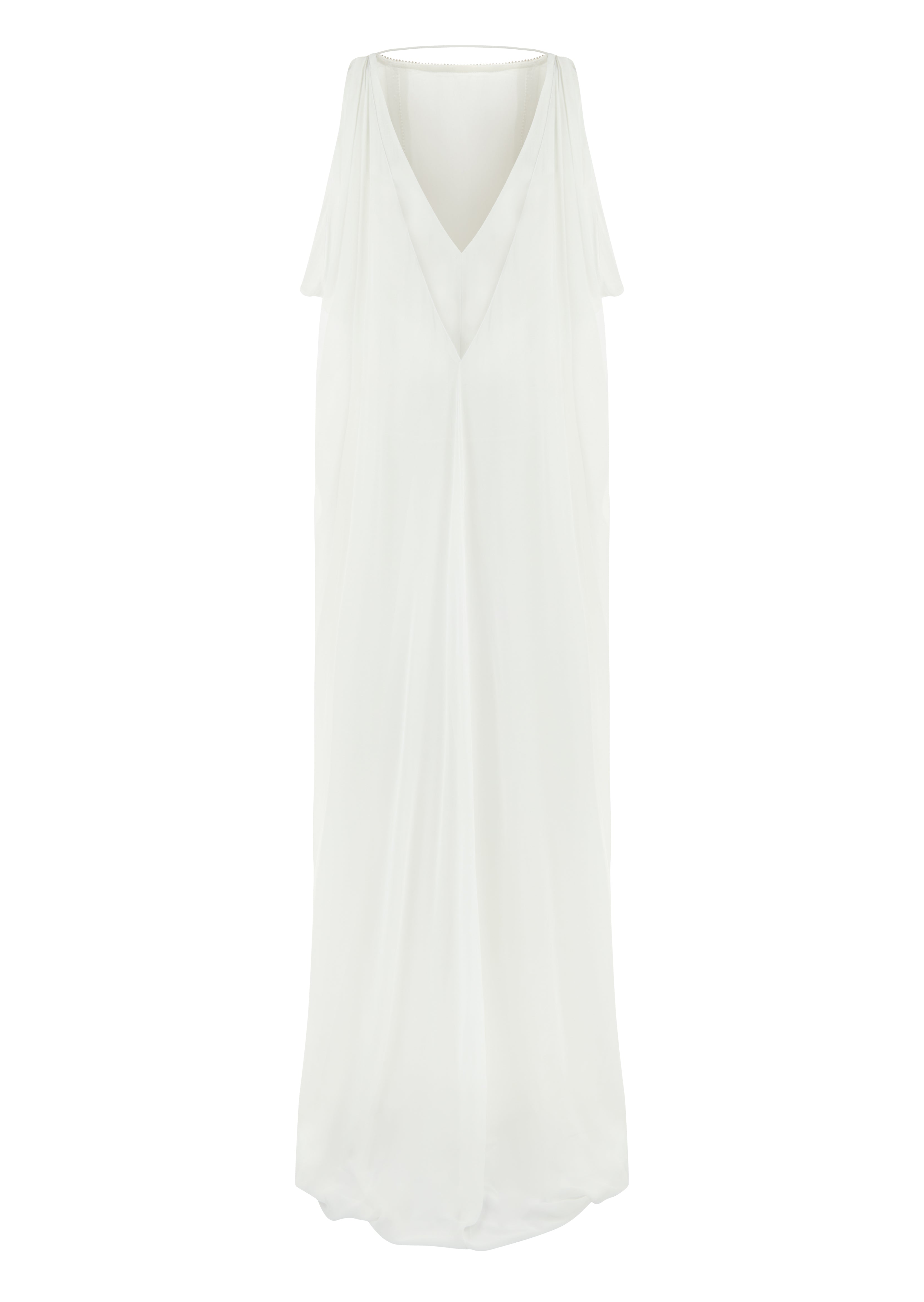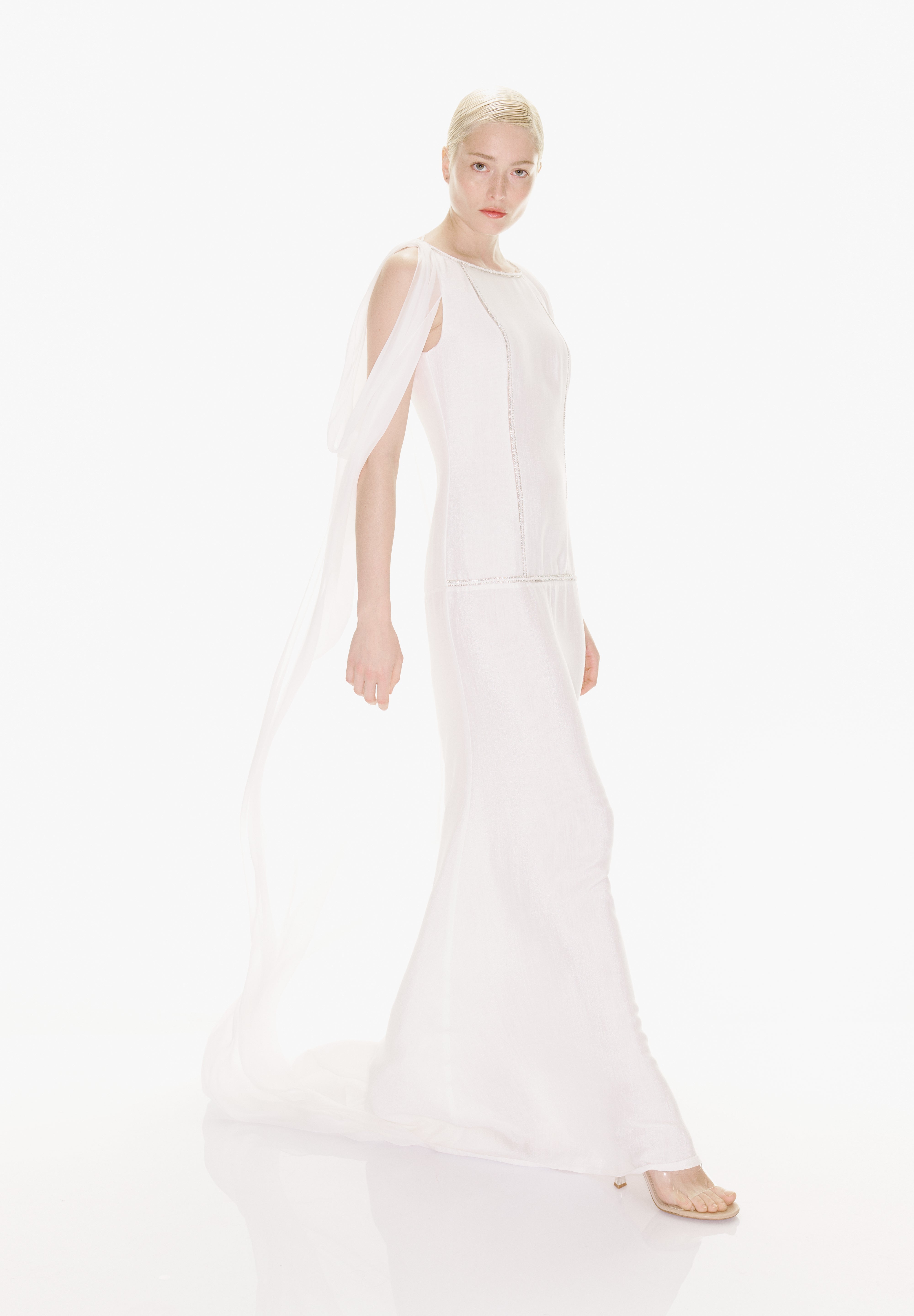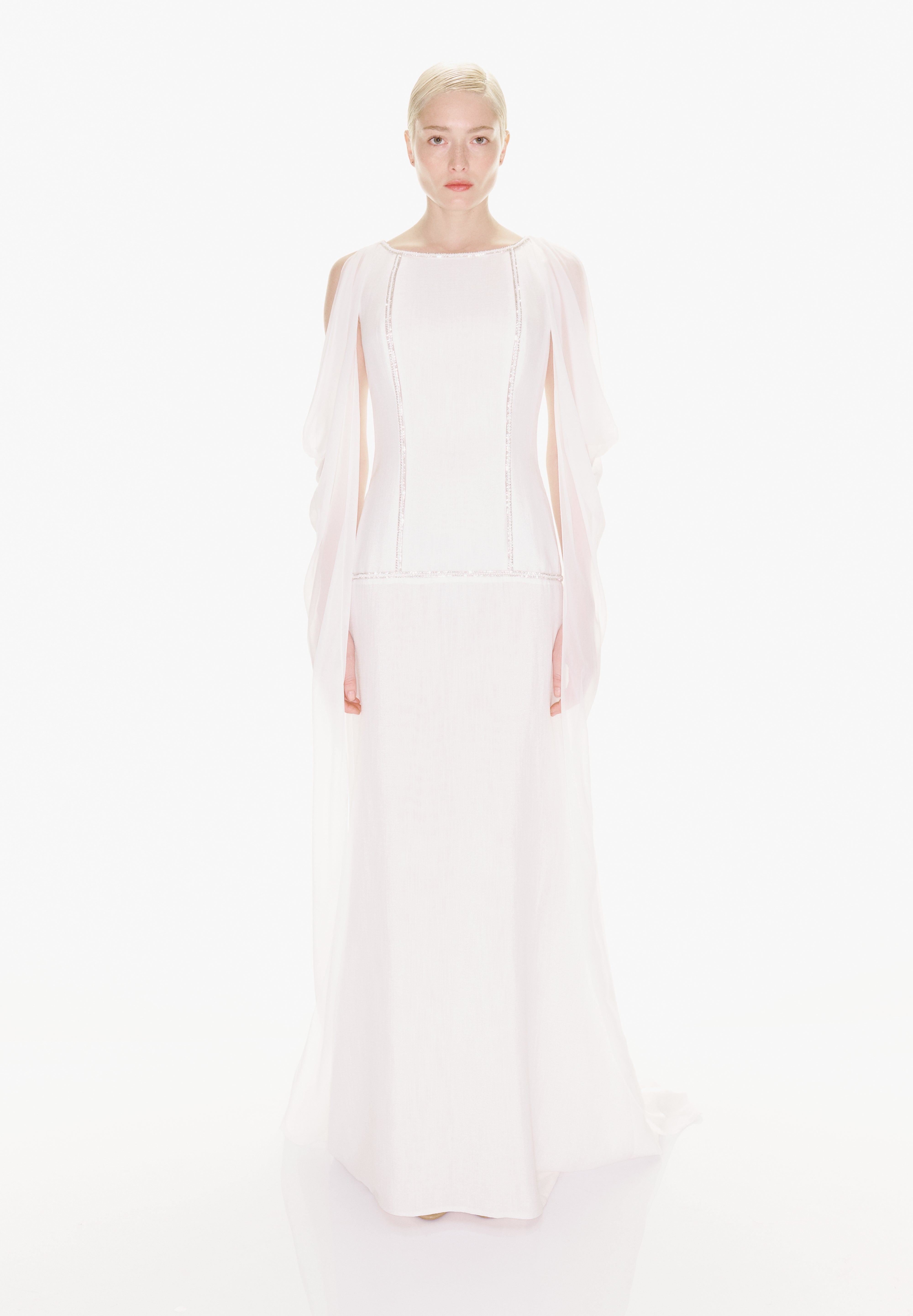 Look no further than "Athena". This gown embodies seaside romance with its flowing silhouette and delicate details.