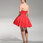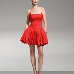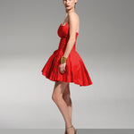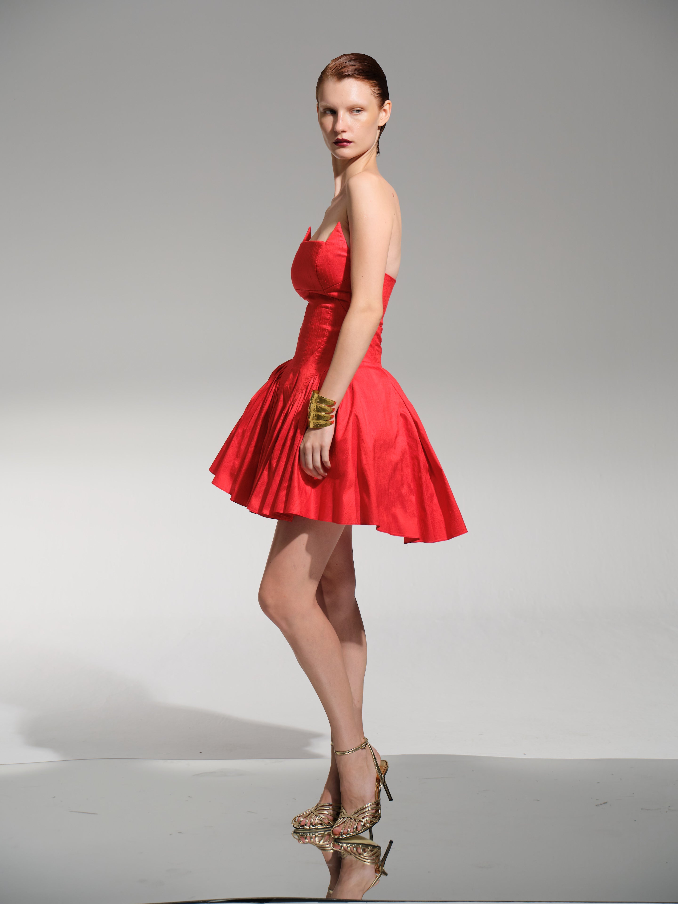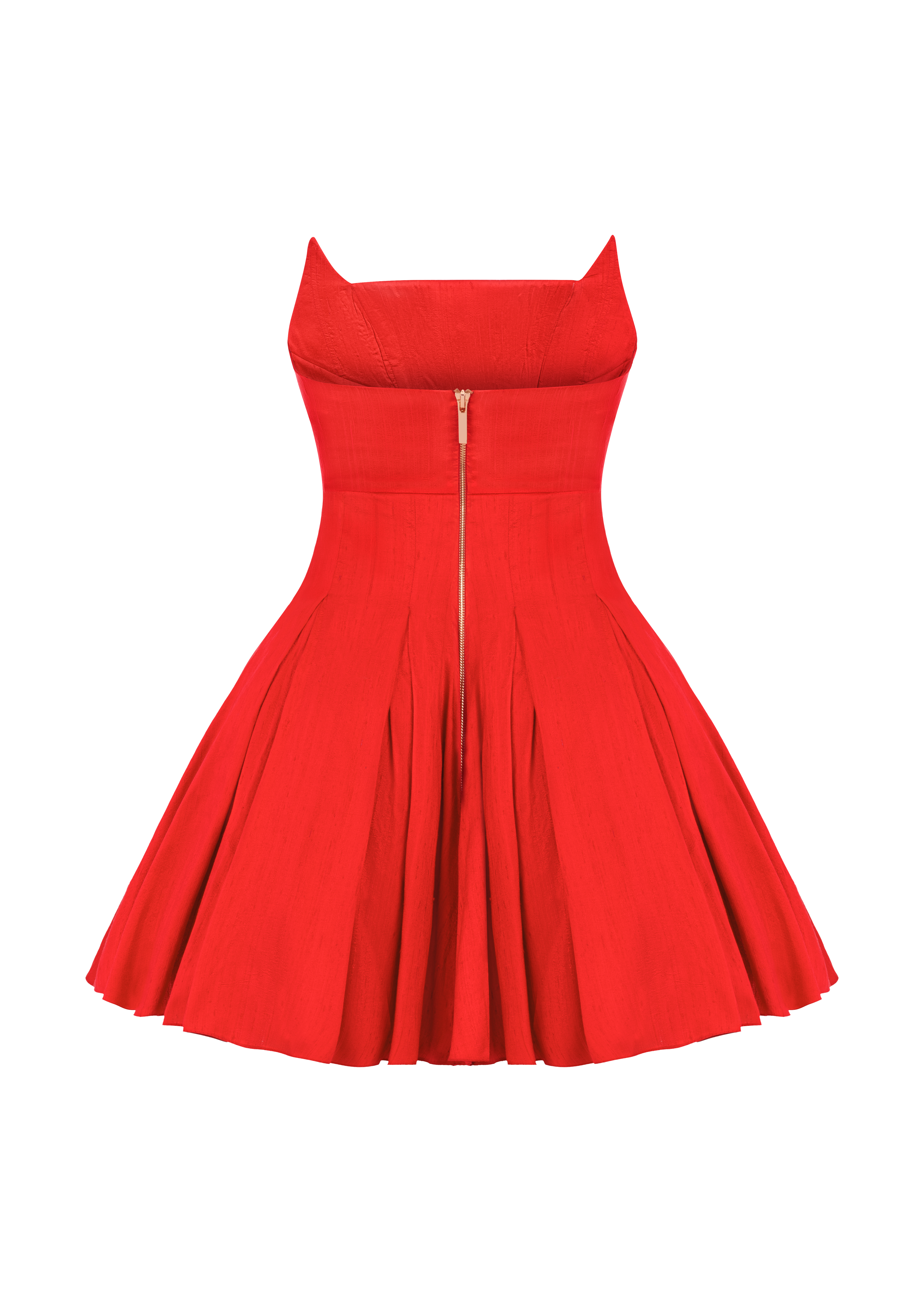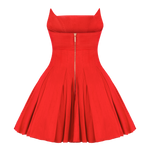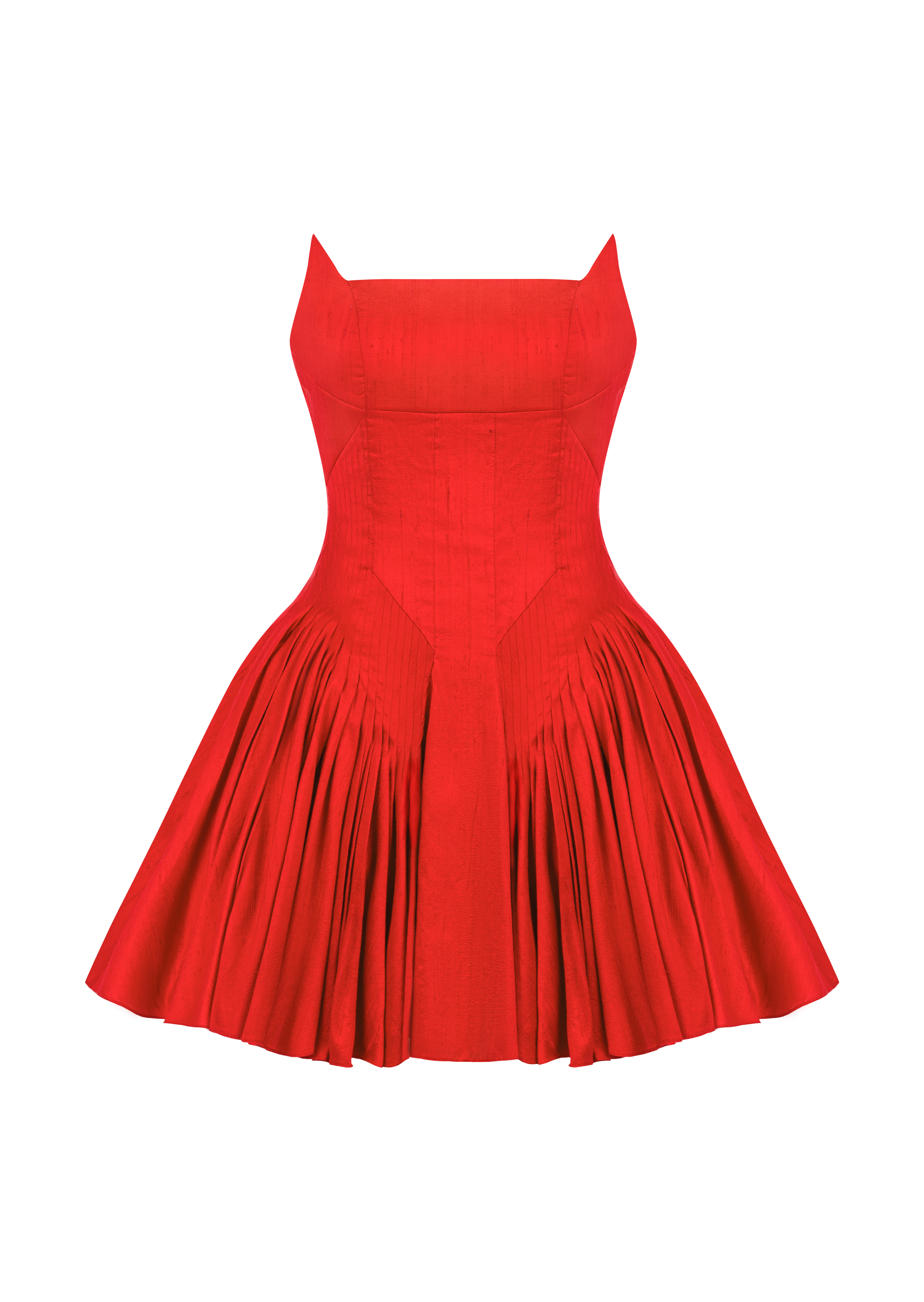 The Camille dress brings a fresh burst of energy with its bold shade and playful mini cut. The fitted top flows into a flared skirt, giving it movement and ease. A simple yet striking piece, perfect for nights when you want to feel confident and chic.
