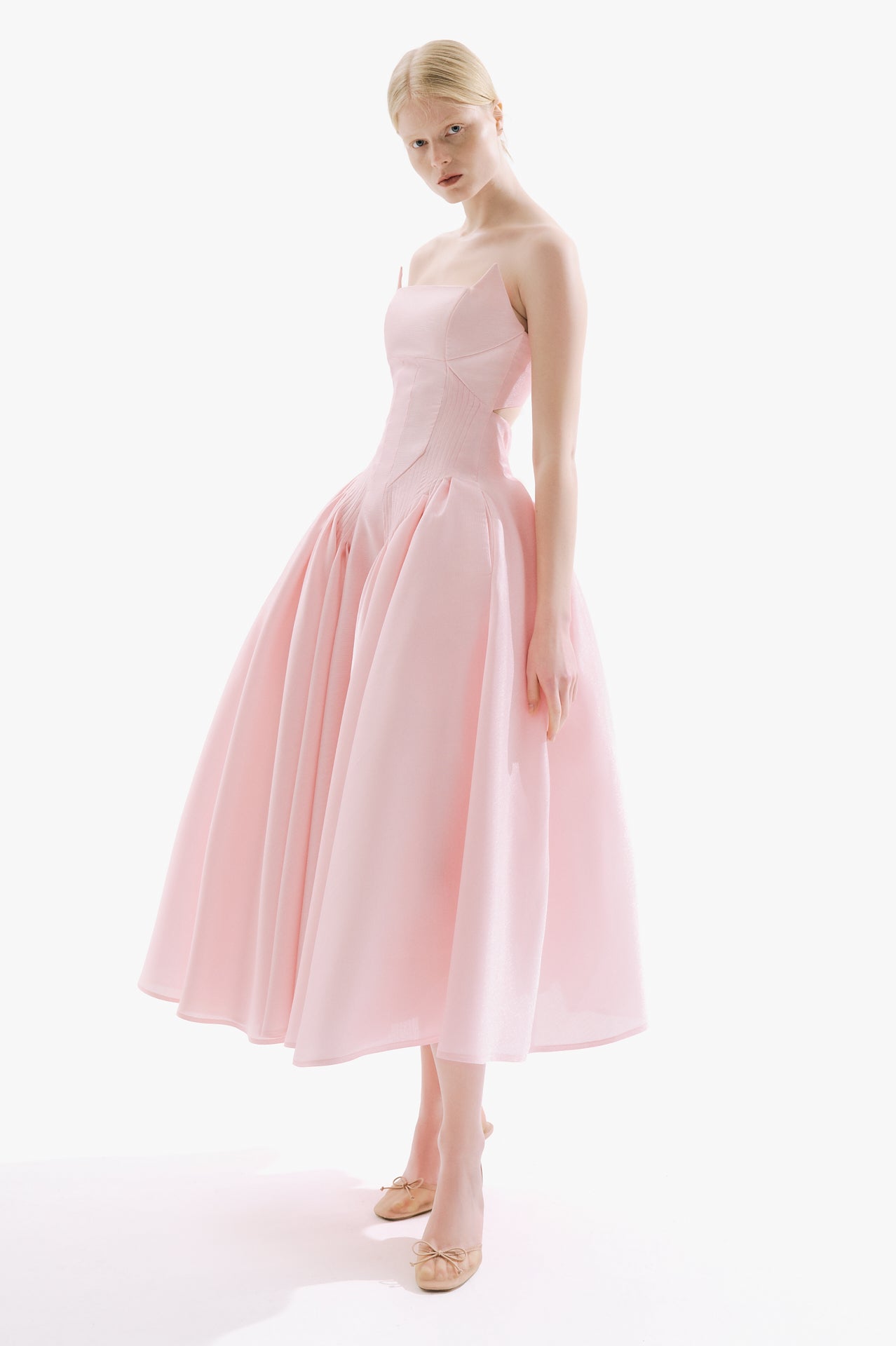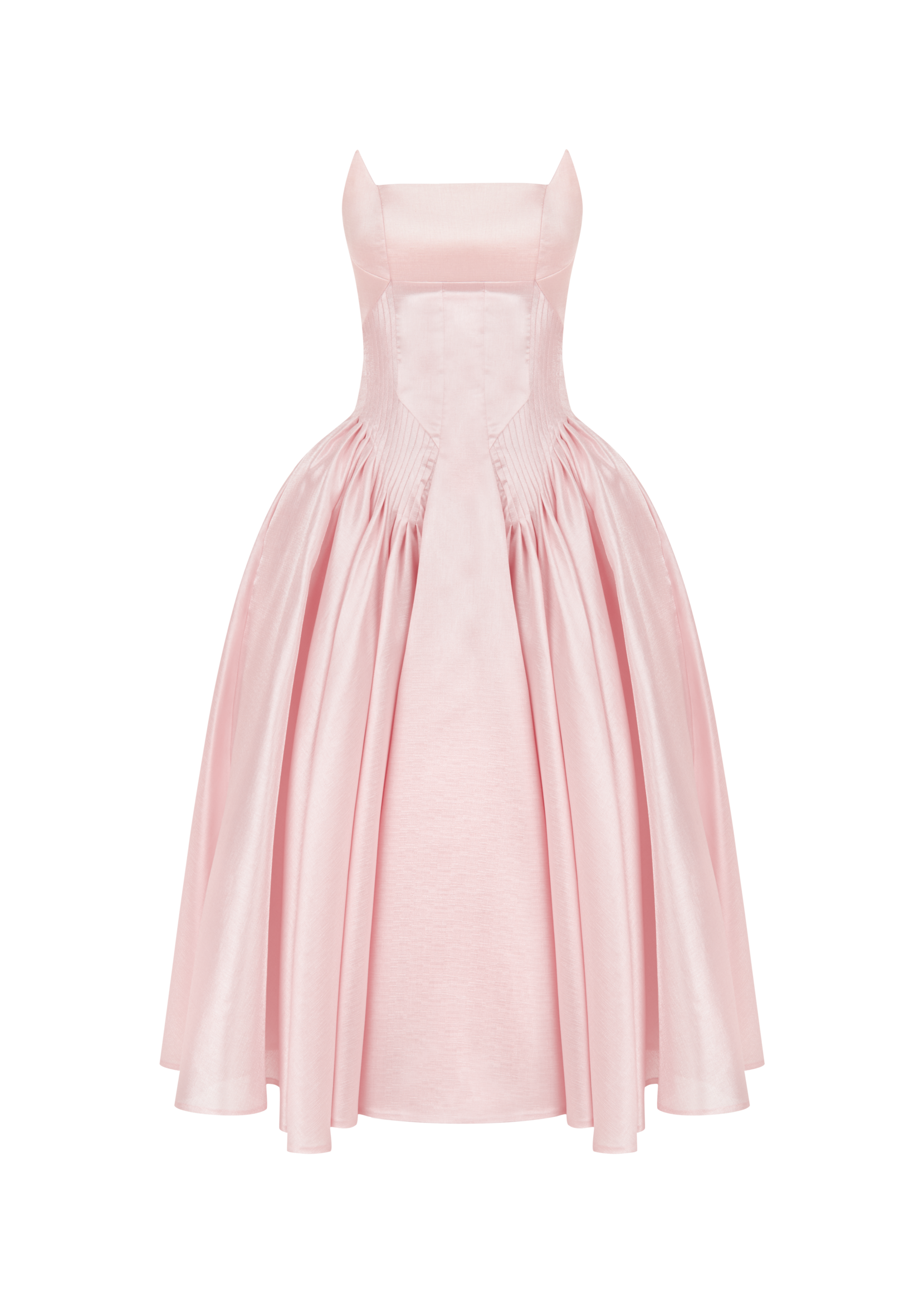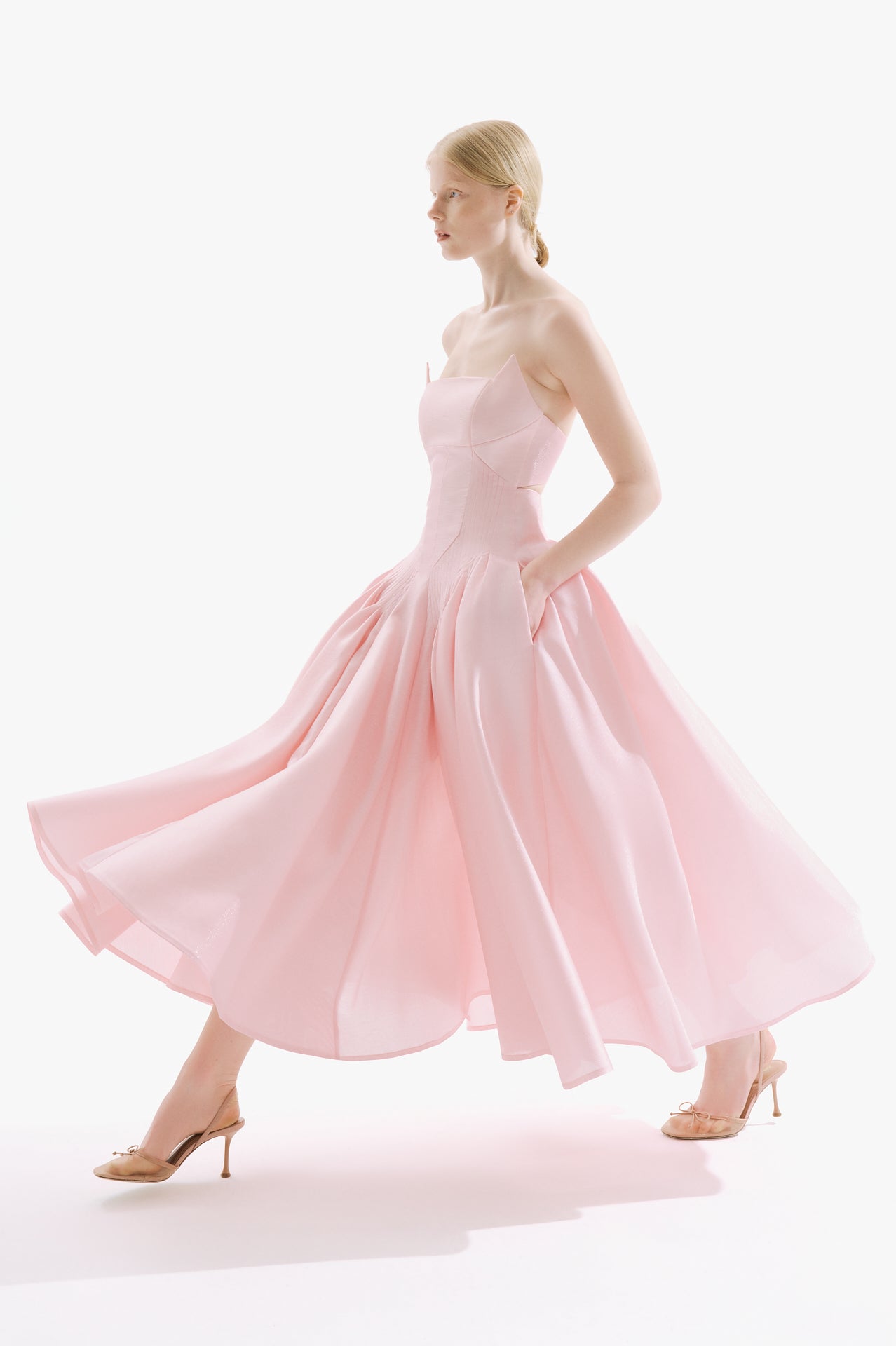Soft and graceful, the Camille dress captures a feminine essence with its elegant design. The voluminous skirt and delicate bodice create a refined silhouette, making it perfect for any sophisticated gathering.