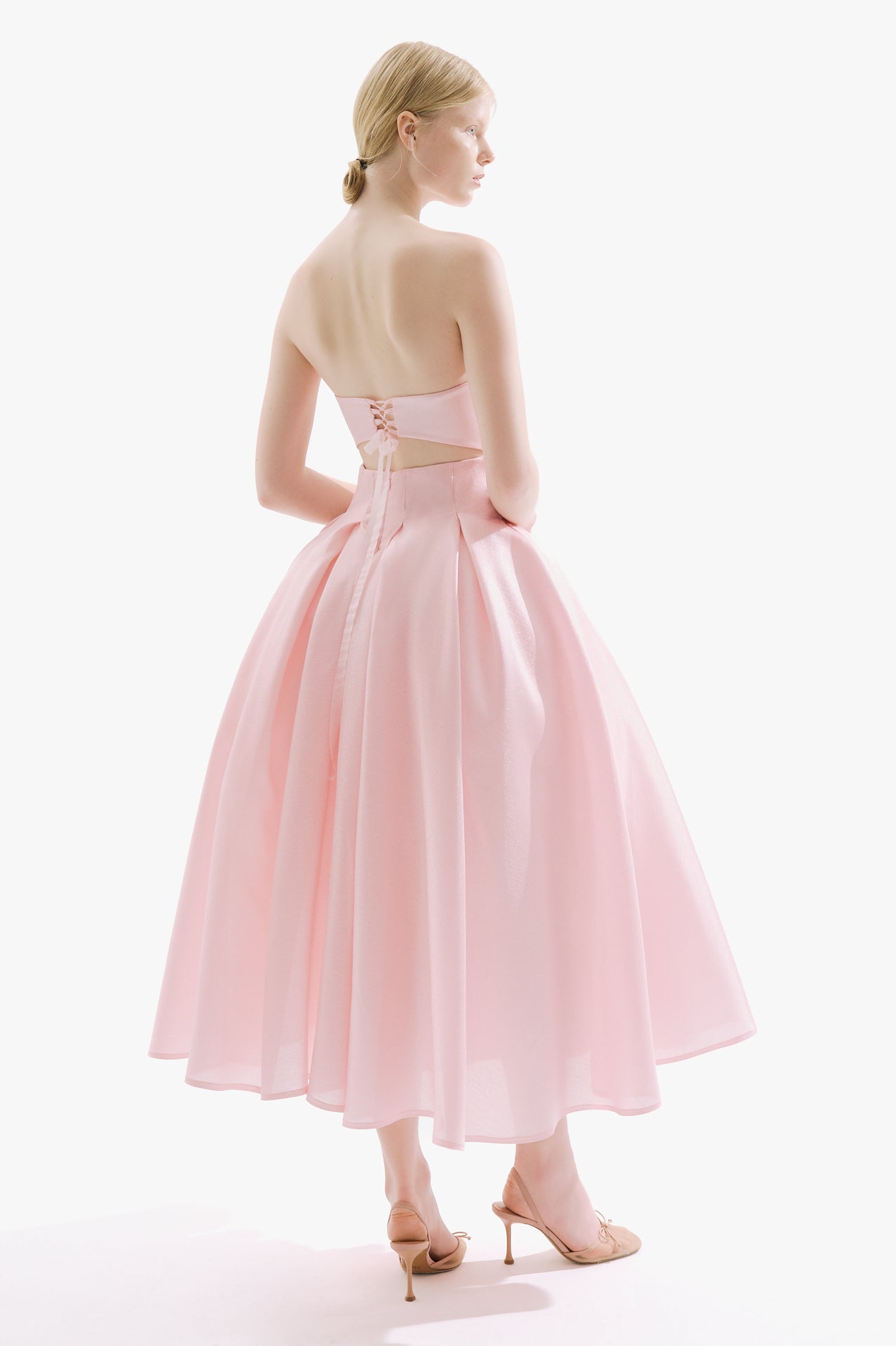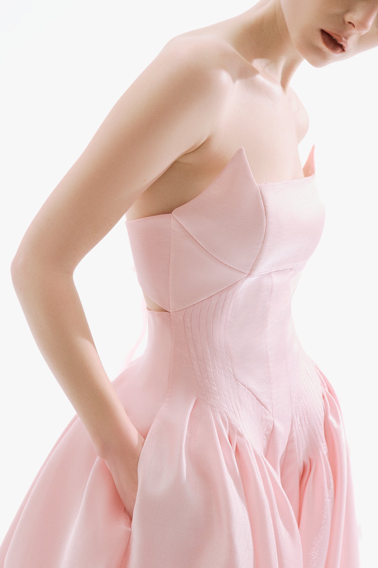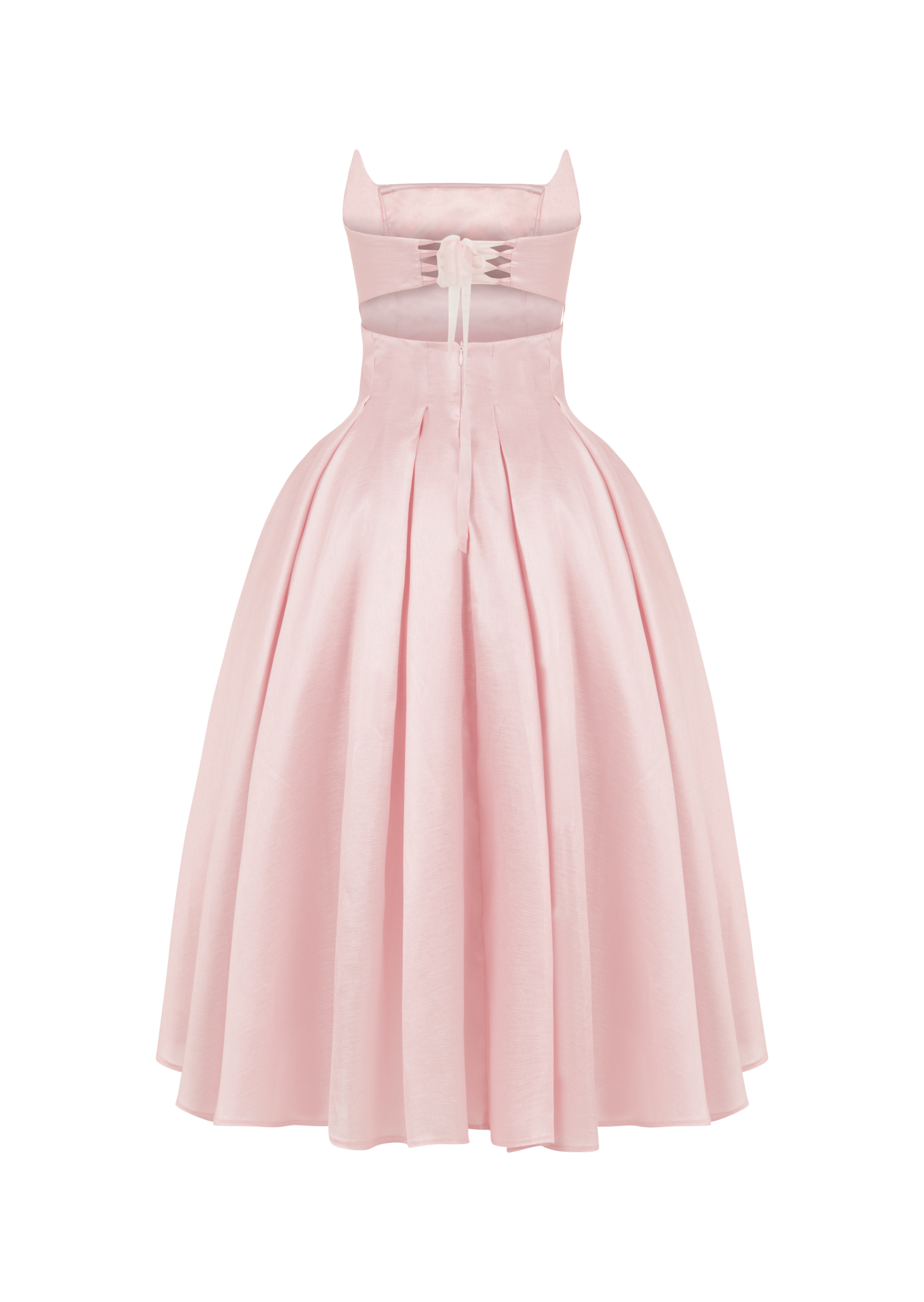 Soft and graceful, the Camille dress captures a feminine essence with its elegant design. The voluminous skirt and delicate bodice create a refined silhouette, making it perfect for any sophisticated gathering.