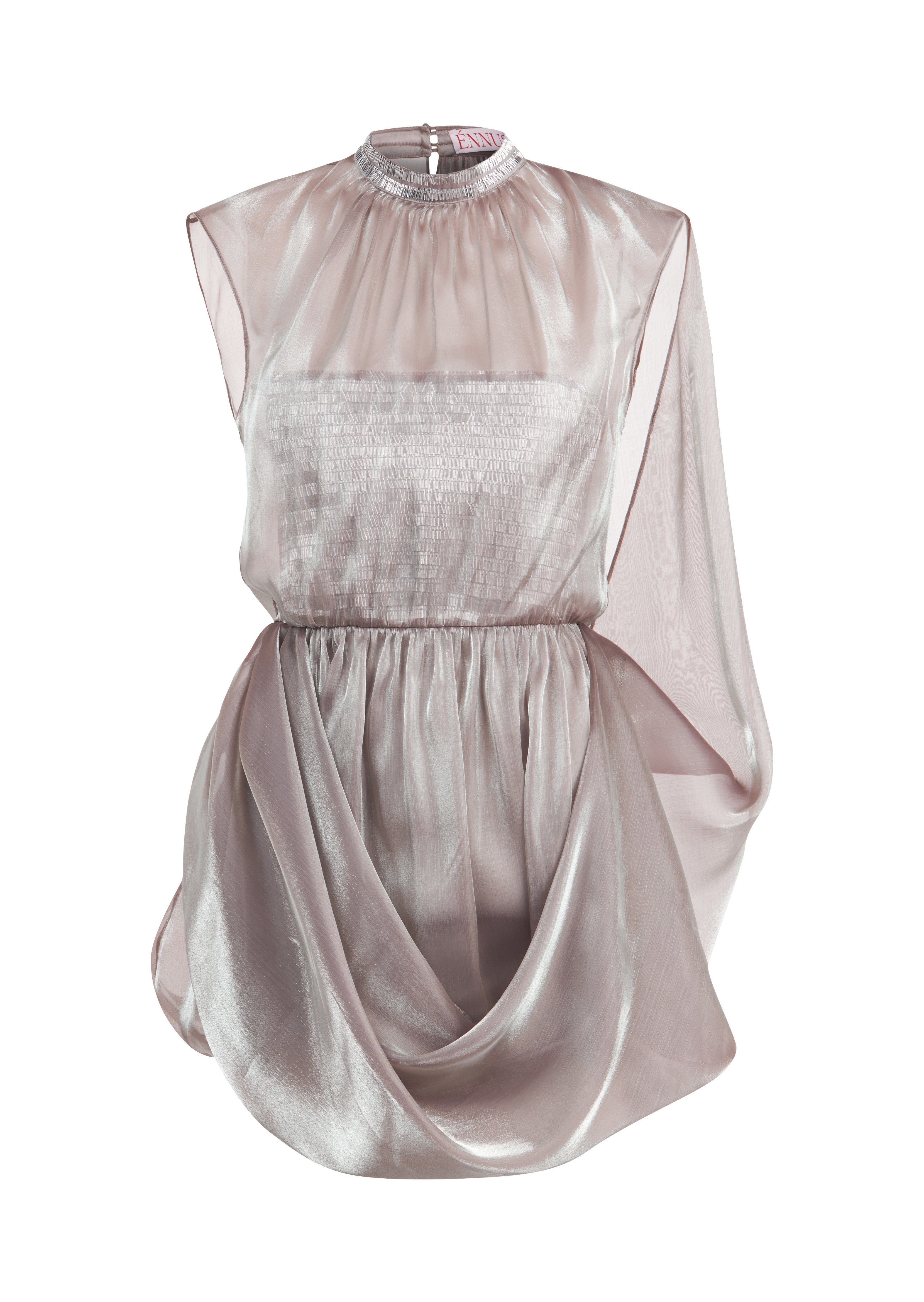 The "Cassia" mini dress is designed to captivate with its whimsical balloon silhouette and shimmering fabric. Elevate any special occasion with this standout piece, sure to steal the spotlight and leave a lasting impression.