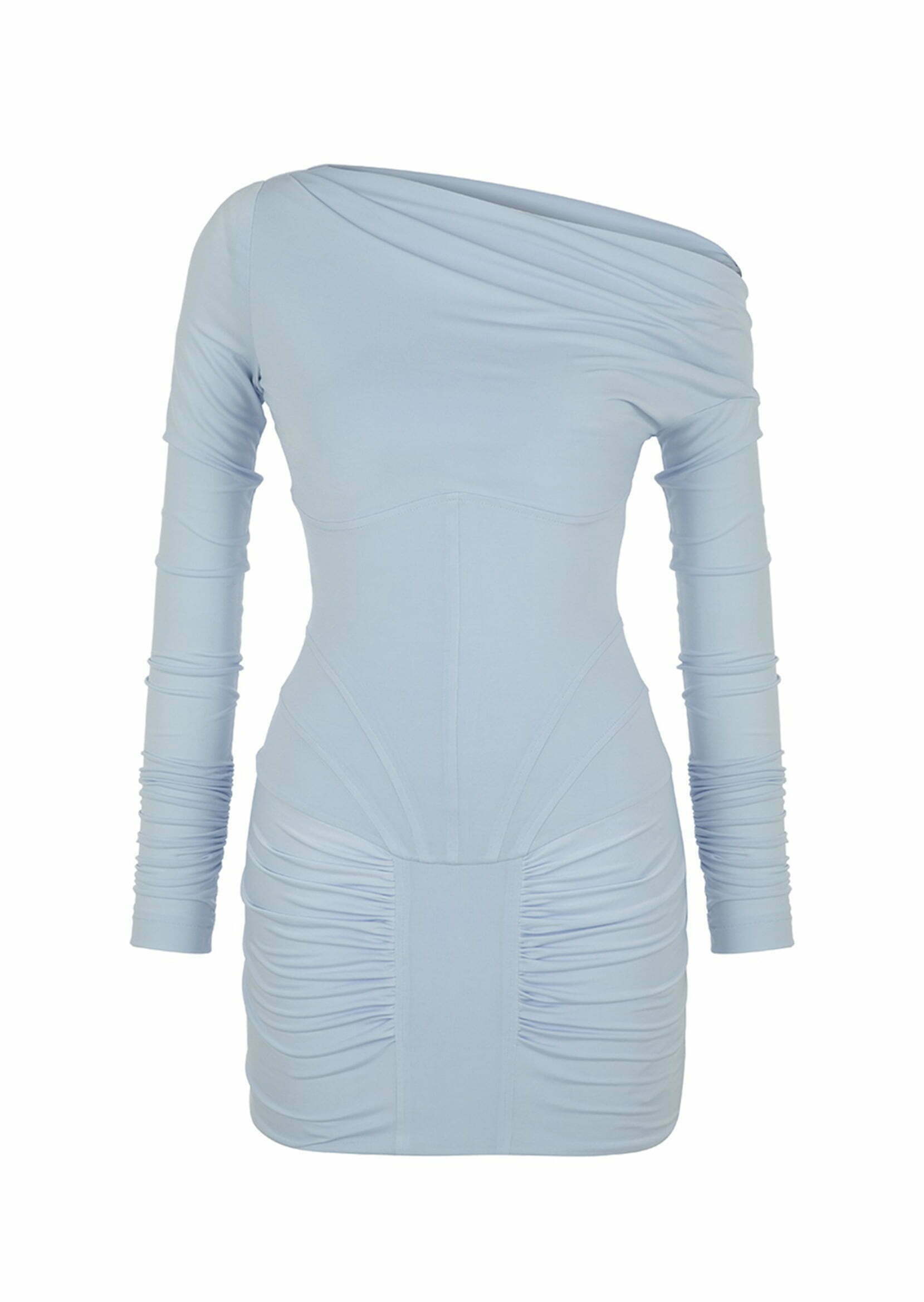 The “Catherina” mini dress is inspired by trendsetter and history maker, Queen Catherine de’ Medici, who was known for her creative taste in fashion. This dress uses its corset details to bring a focus to your waist and its sky blue shade symbolic to the Queen’s royal monogram.