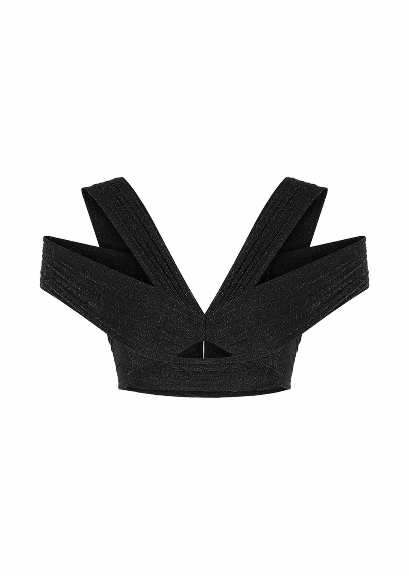 Now it’s your time to shine. The “Celia” crop-top’s shimmering design creates an elegant style while offering a touch of attitude. This dazzling look is perfectly paired with the “Grazia” skirt.