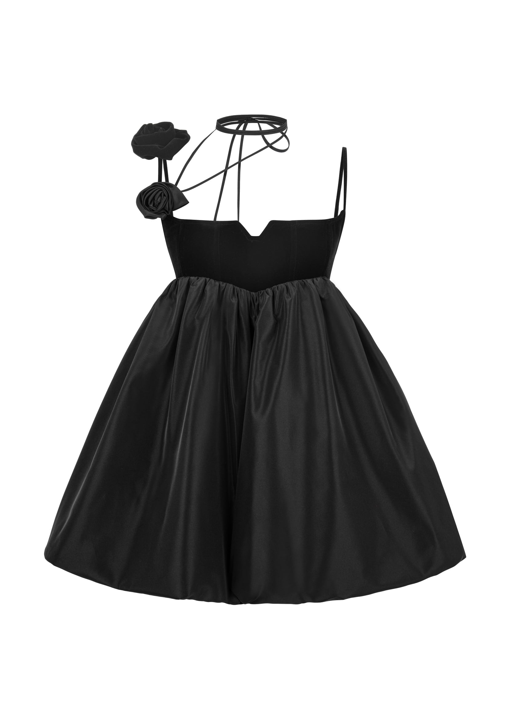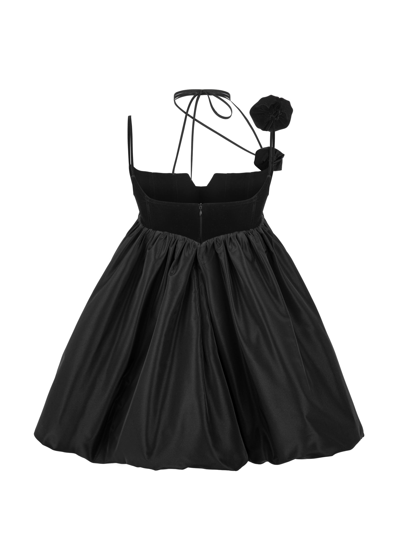 The “Arianna” dress, with decorated eye catching rose details that will make you stand out on the most special nights with its ballon form and festive color options; the gold sparkling red and the elegant black.