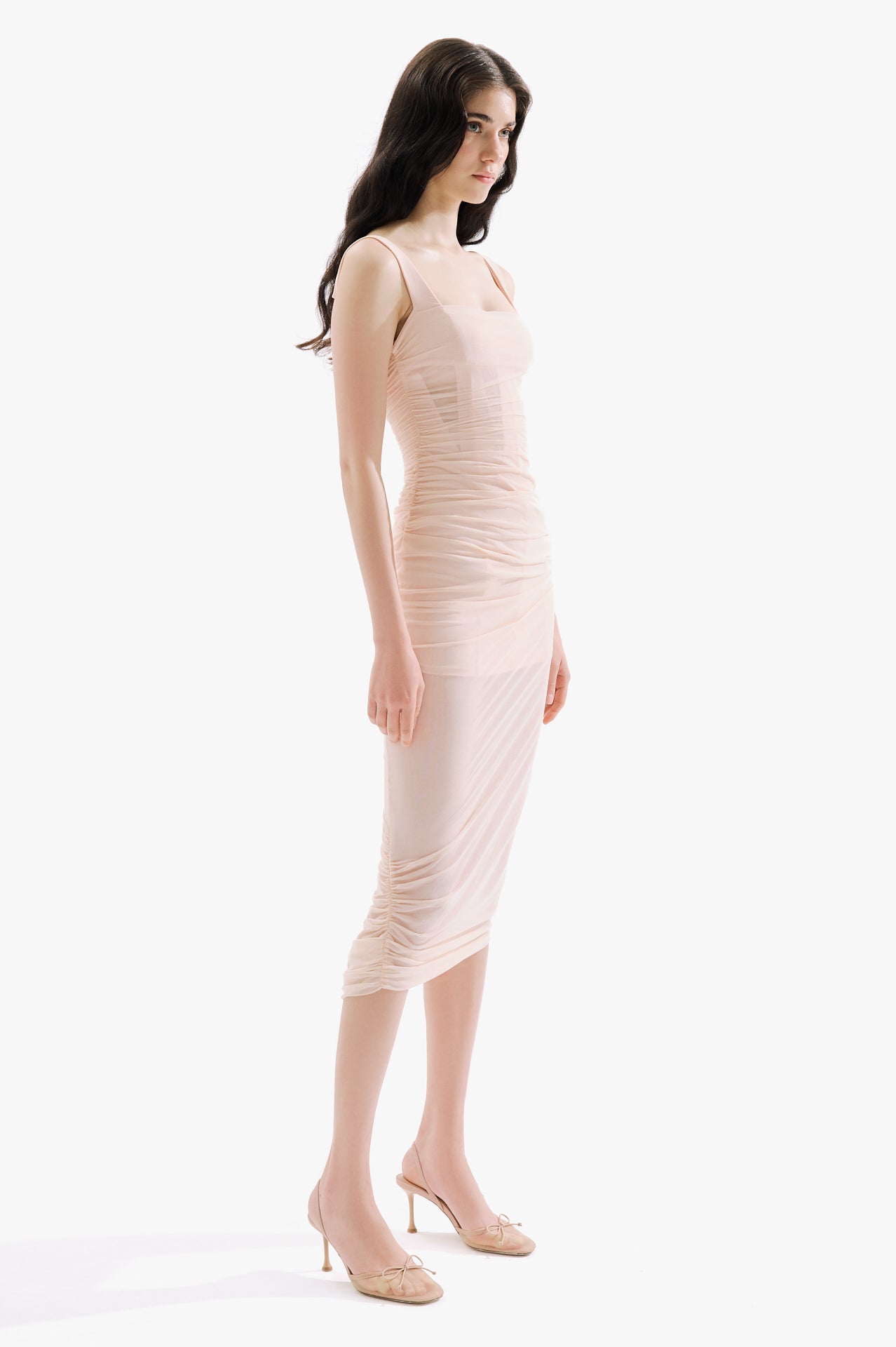 Soft and refined, the Ele dress captures timeless elegance. Its delicate design, complemented by smooth draping, creates a flattering and feminine shape that is perfect for sophisticated gatherings.