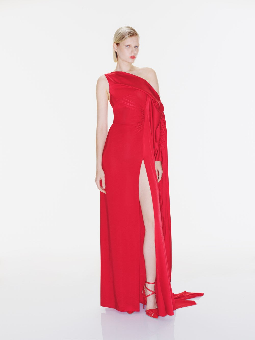 “Hélène”, which creates a special silhouette with its charming single-sleeved design and deep slit, offers the most elegant look of the events.