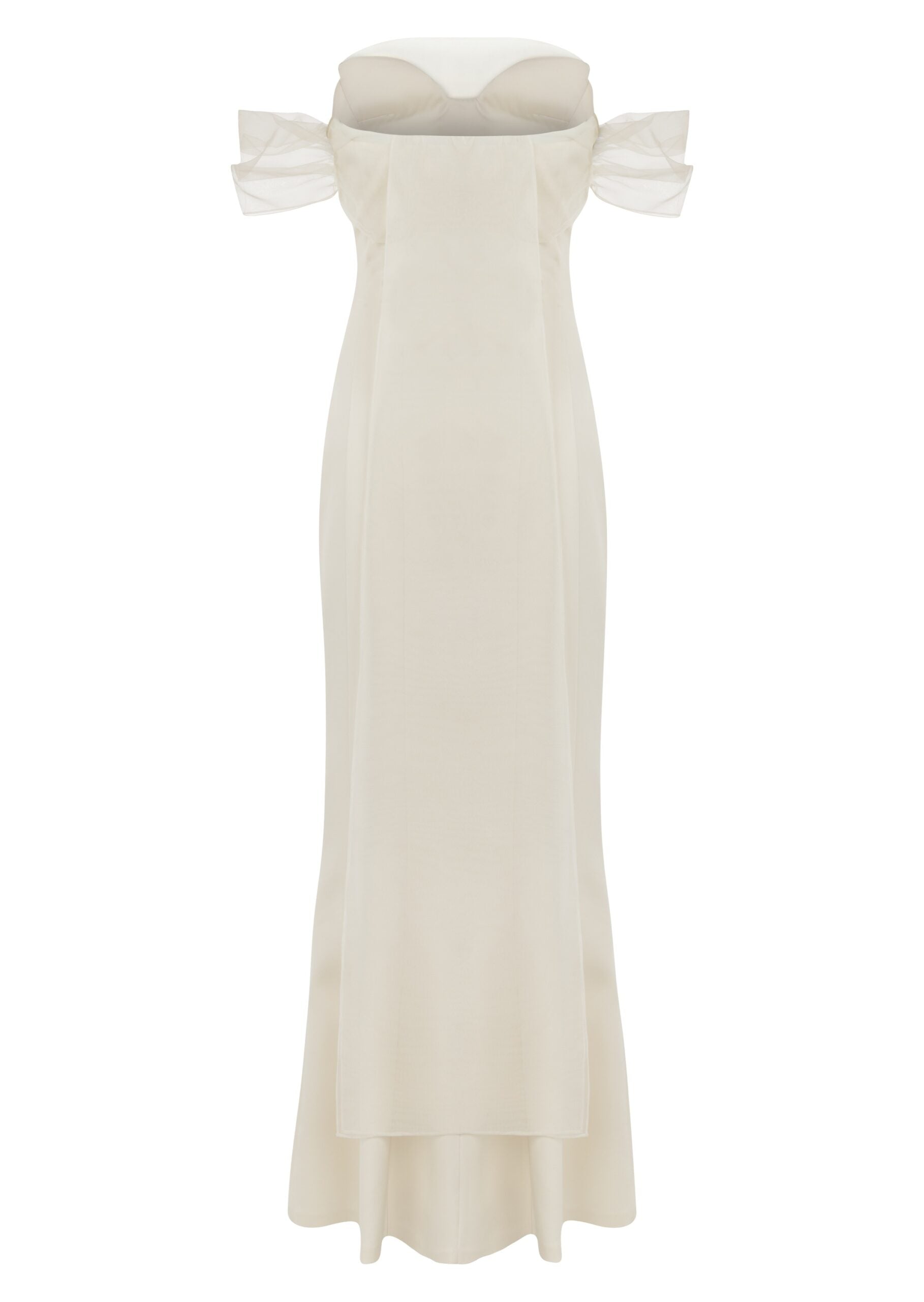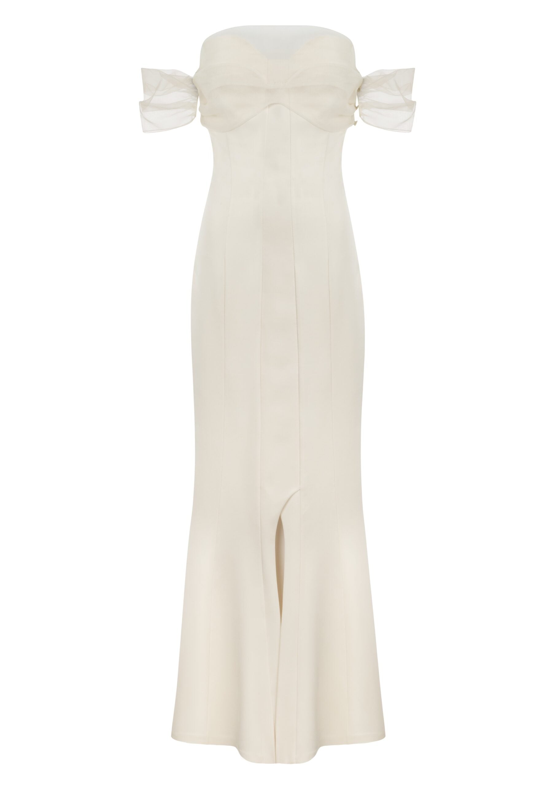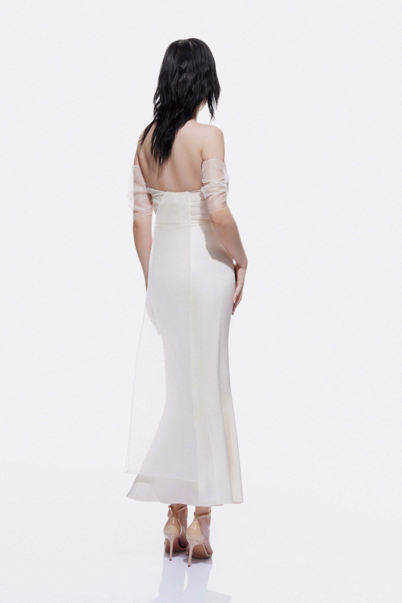 Organza Detailed Strapless Dress with Detachable Sleeves
