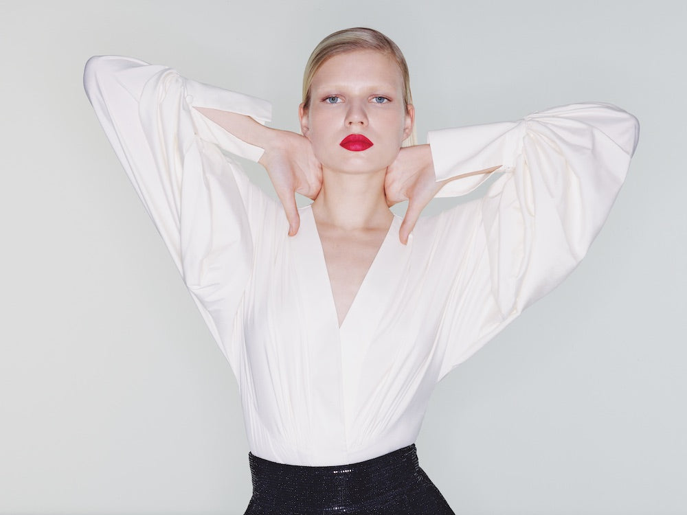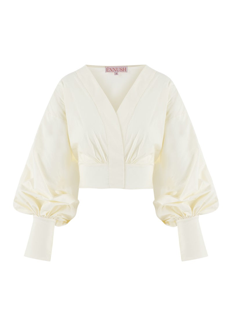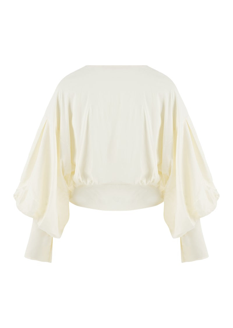The “Josephine” shirt, which draws attention with its balloon sleeves, offers a magnificent look with both jeans and the “Édith” skirt.