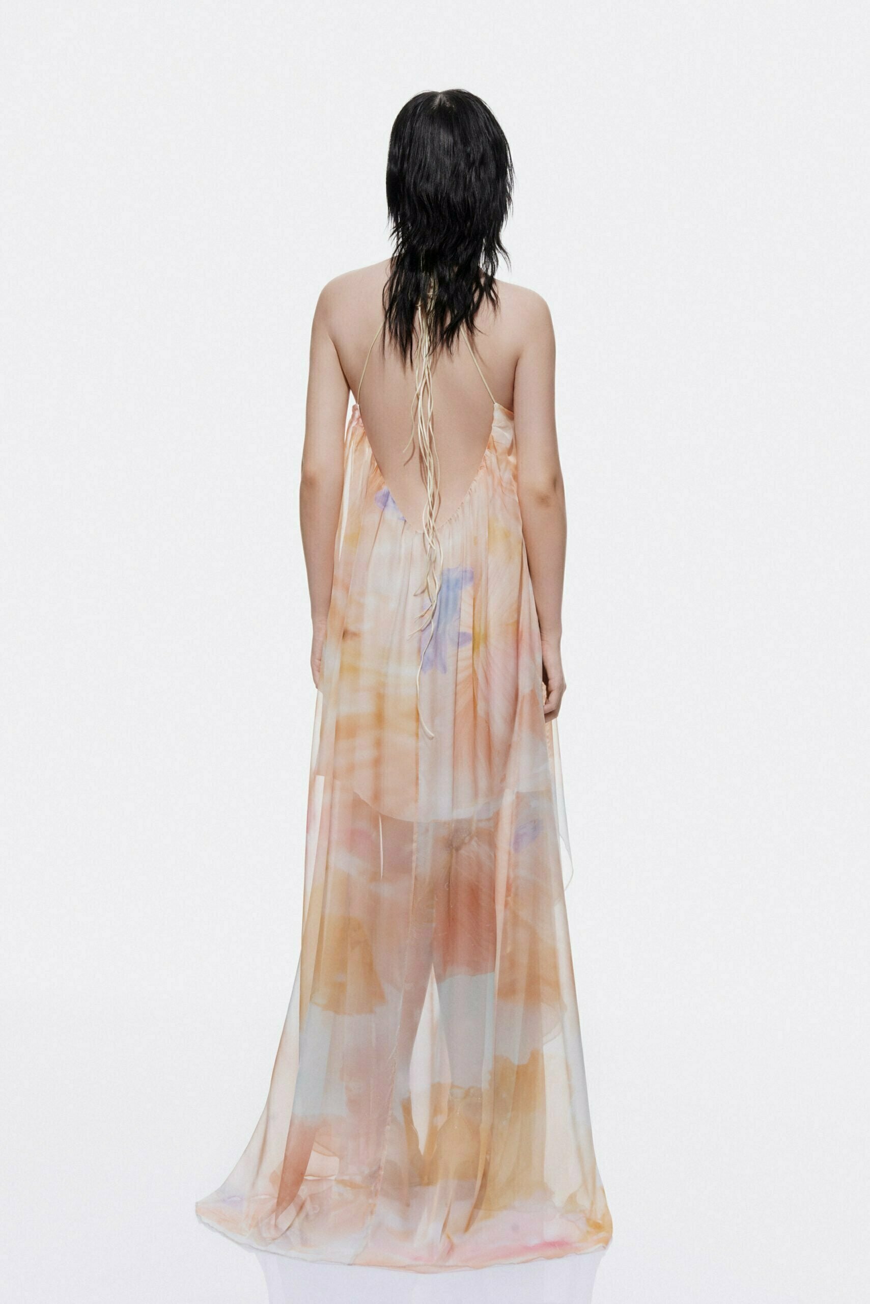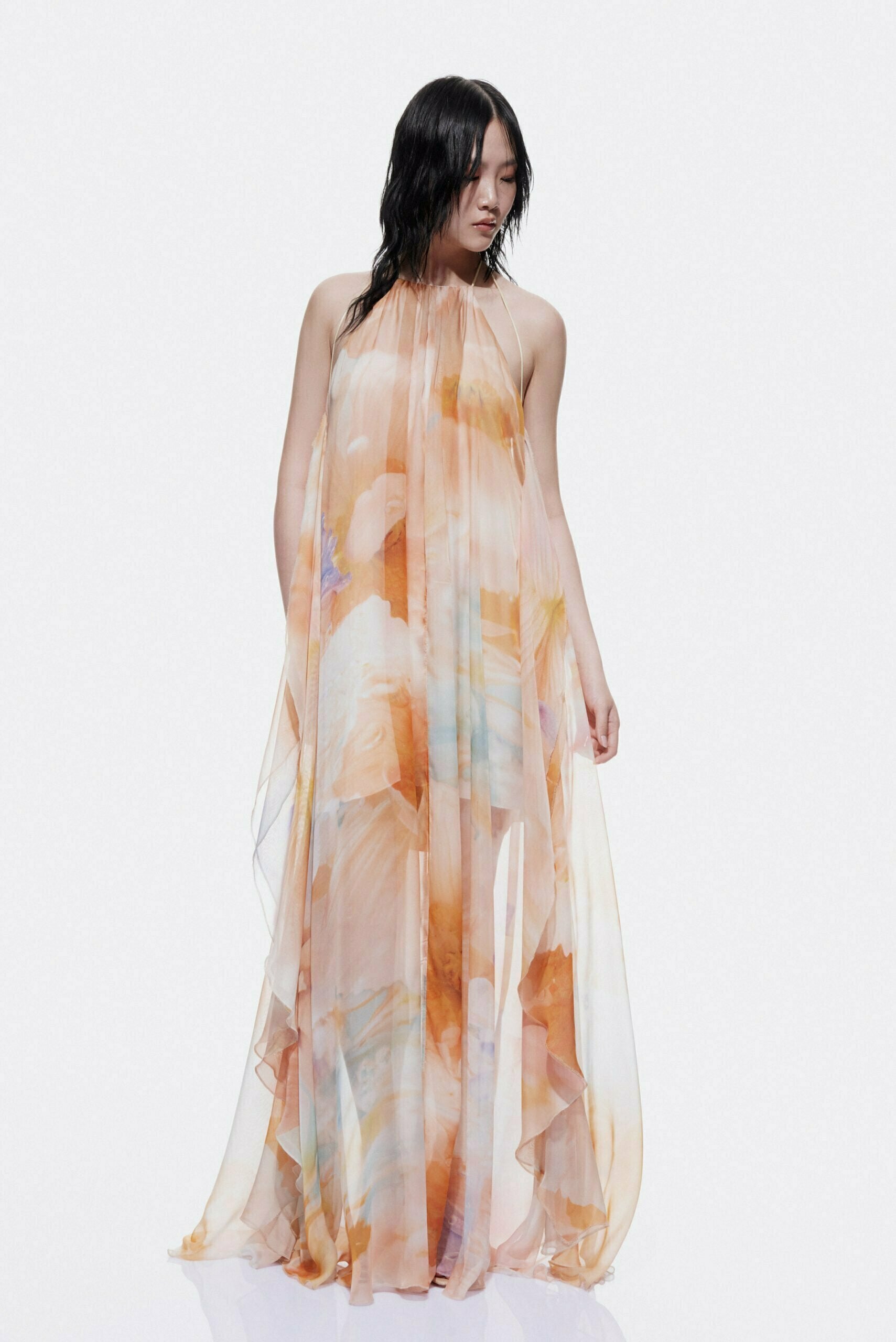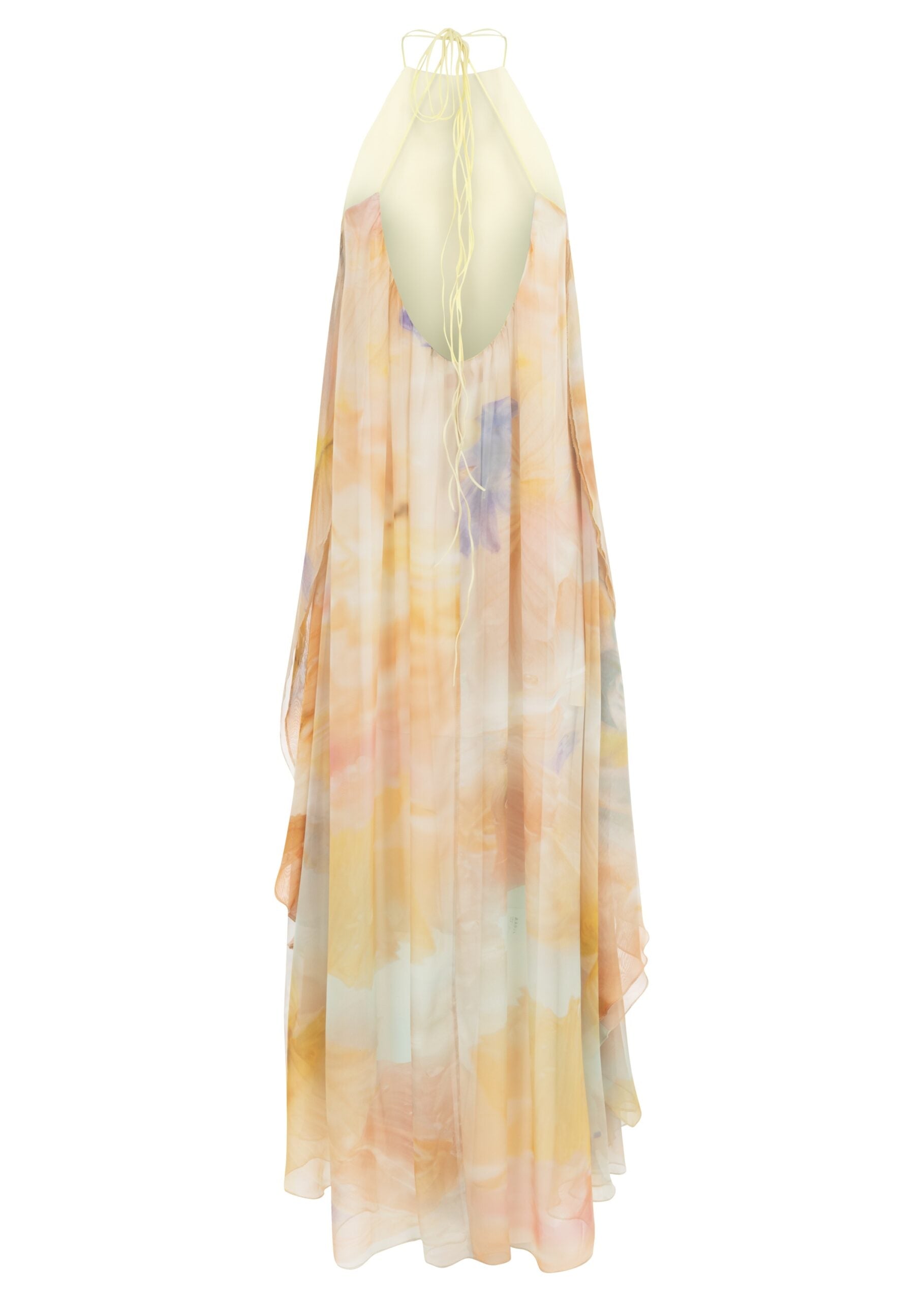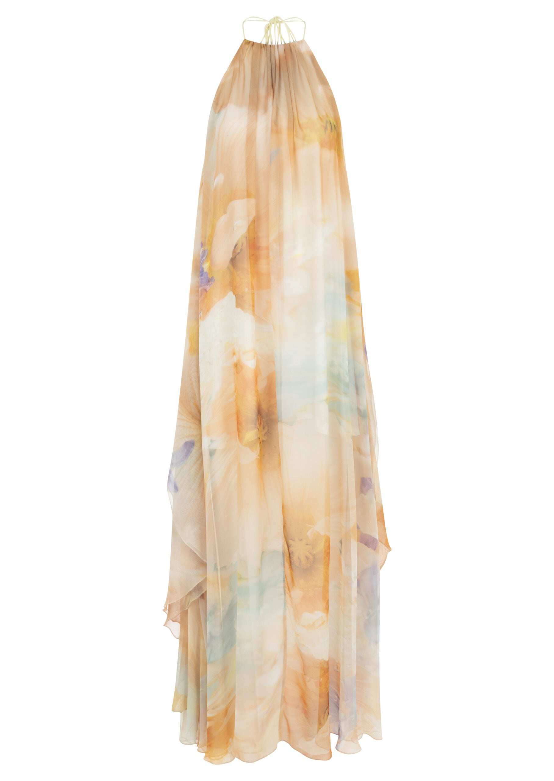 Gaining dynamism with flowing floral patterns, the “Lia” maxi dress brings an extraordinary and free spirited look to the most striking summer parties.