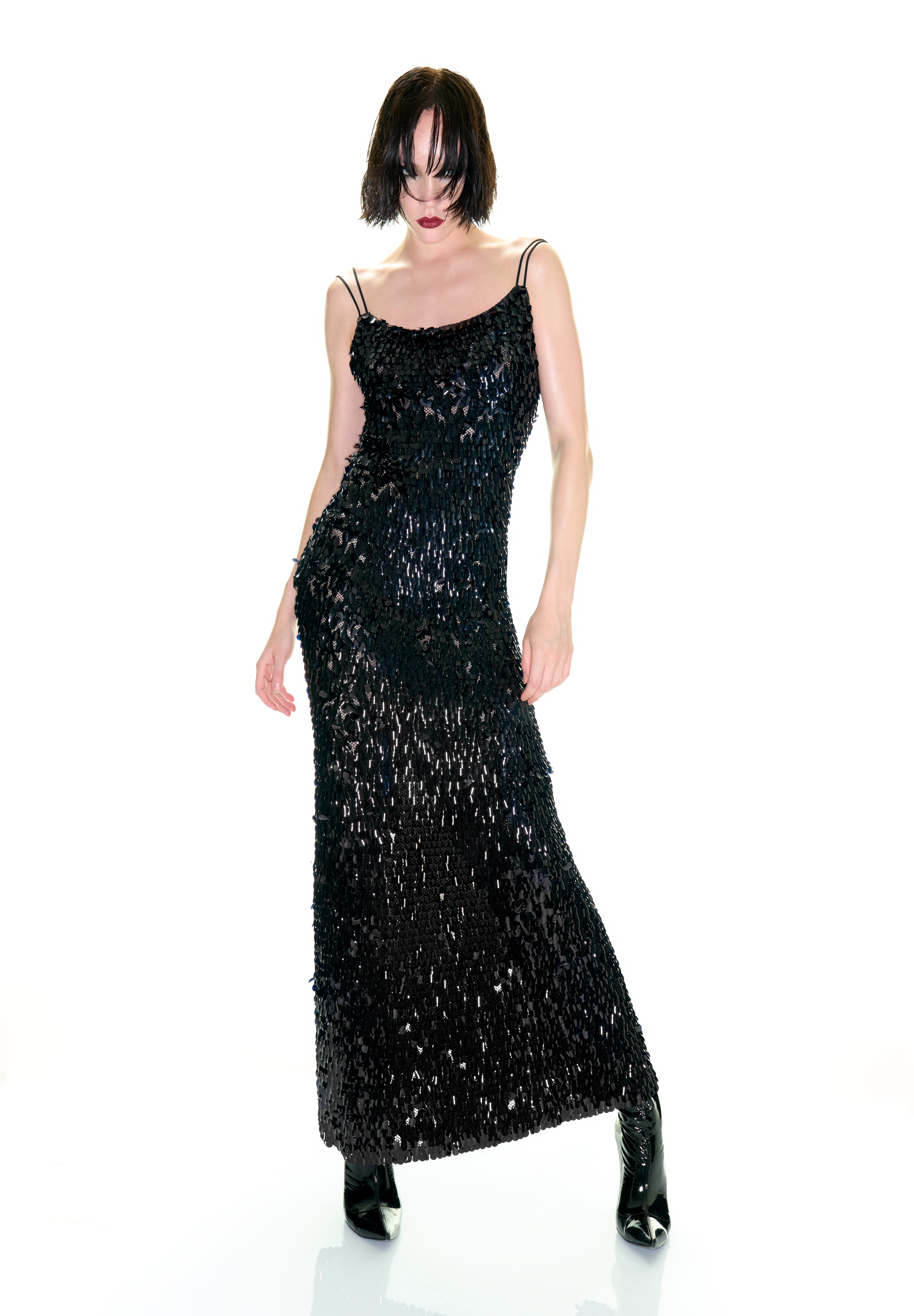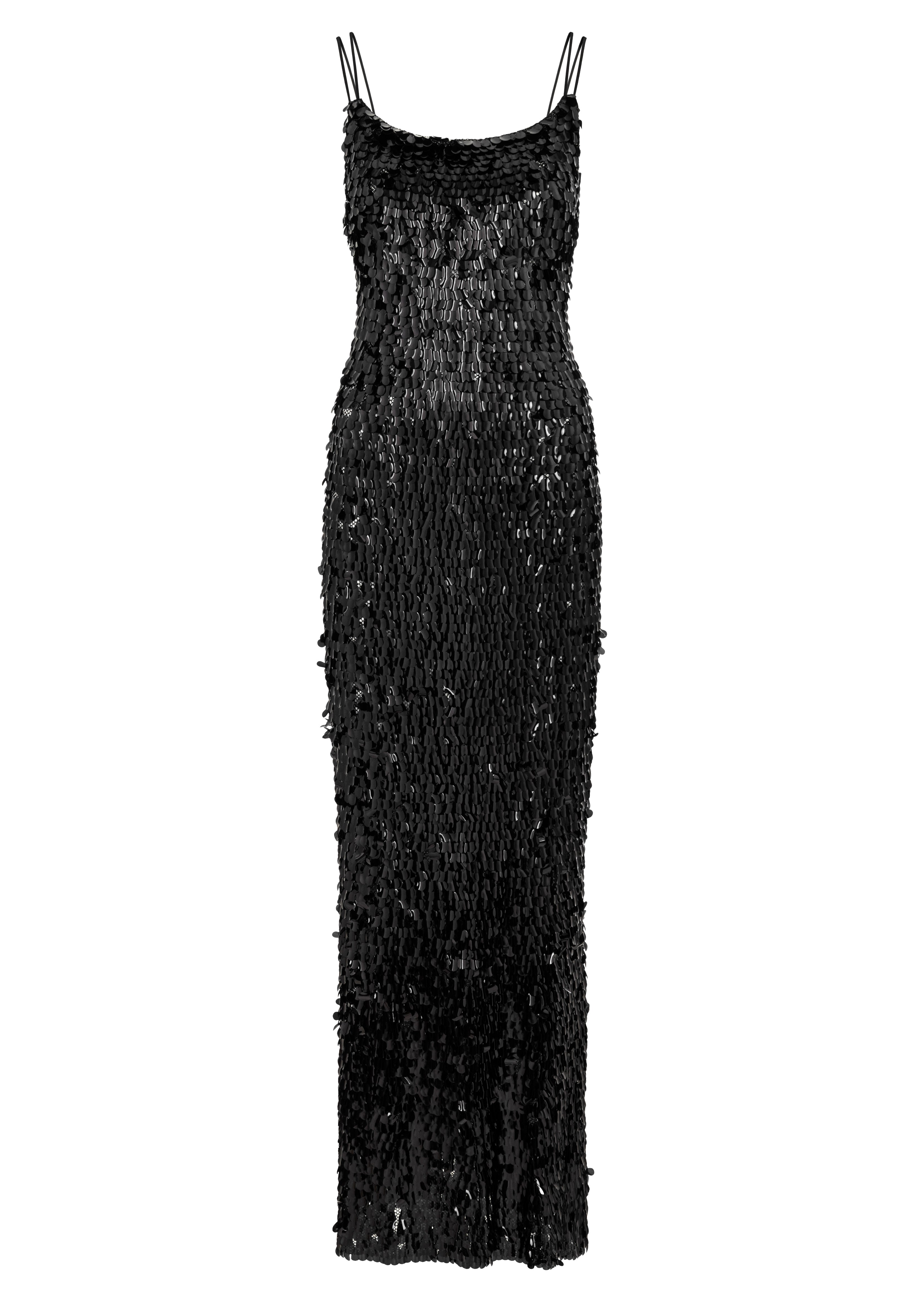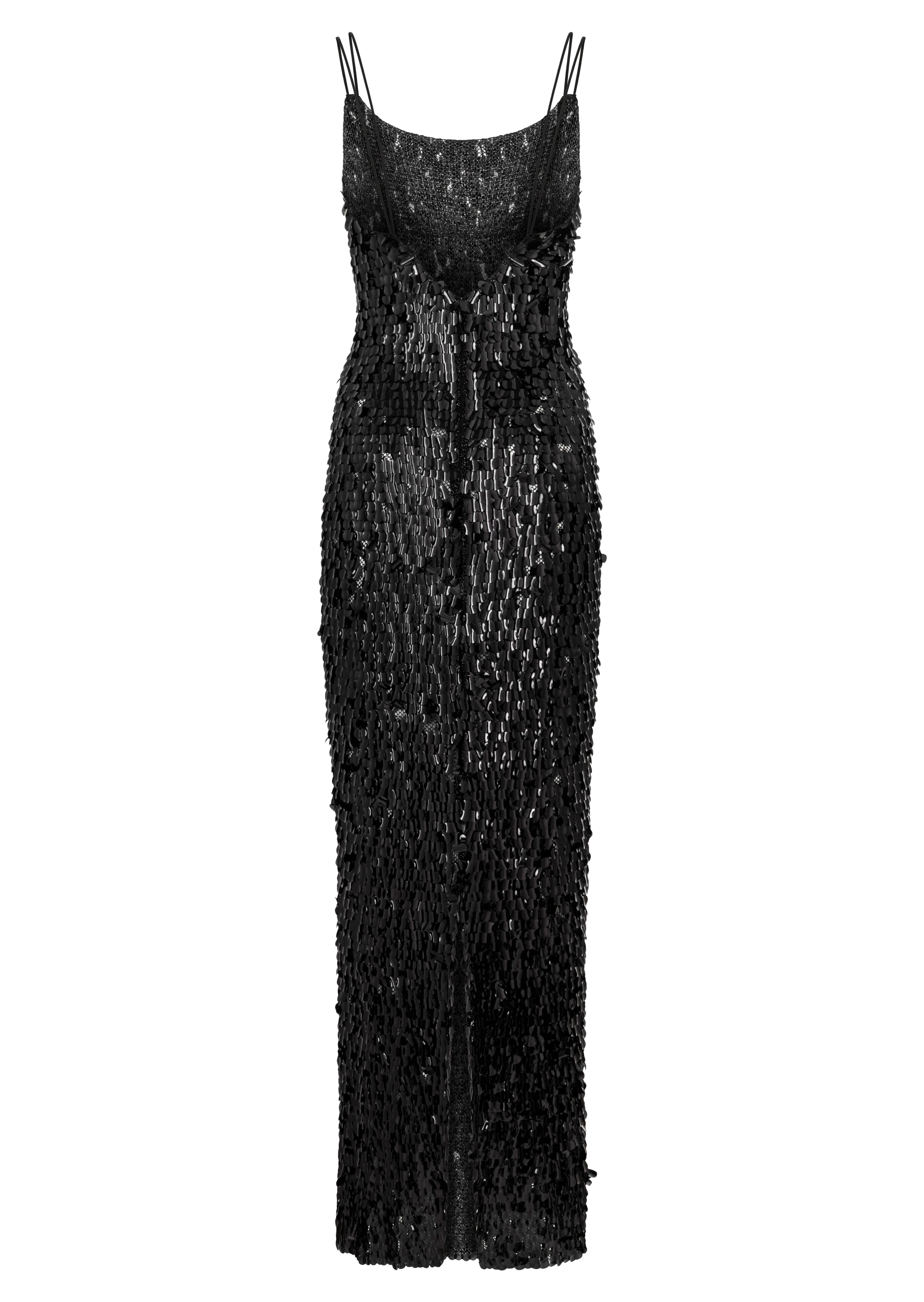 The “Lyanna” dress offers sophisticated evening elegance with its elegant black design and shimmering details. With its classic cut and figure-hugging shape, it is a striking choice for any setting.
