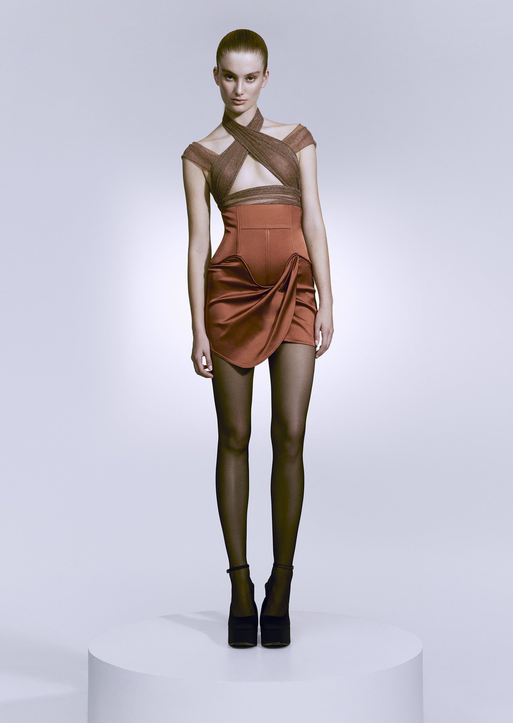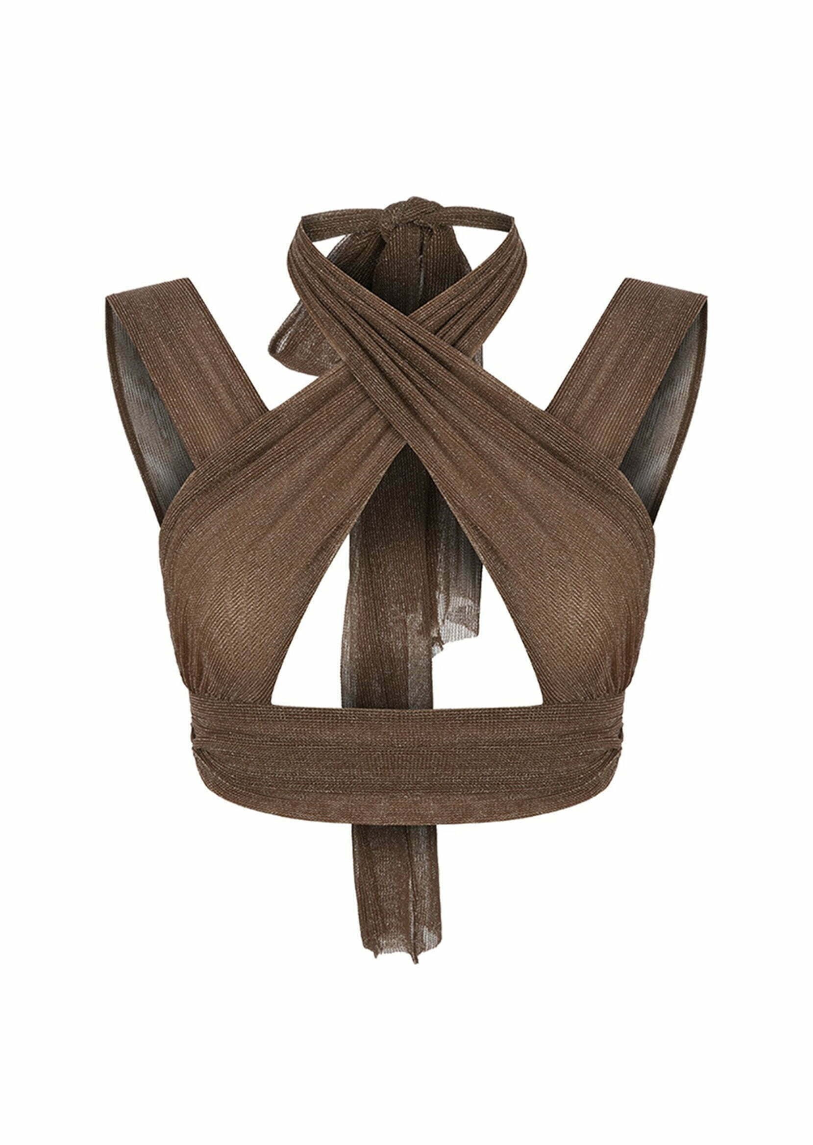The “Matilda” cropped blouse is quite simply stunning. Its shimmery fabric and extraordinary design wraps around the neck and offers an elegant yet fierce look that is perfect for heading out on the town or cocktails with your ladies. You can get the ultimate style by combining it with the “Anna” skirt.