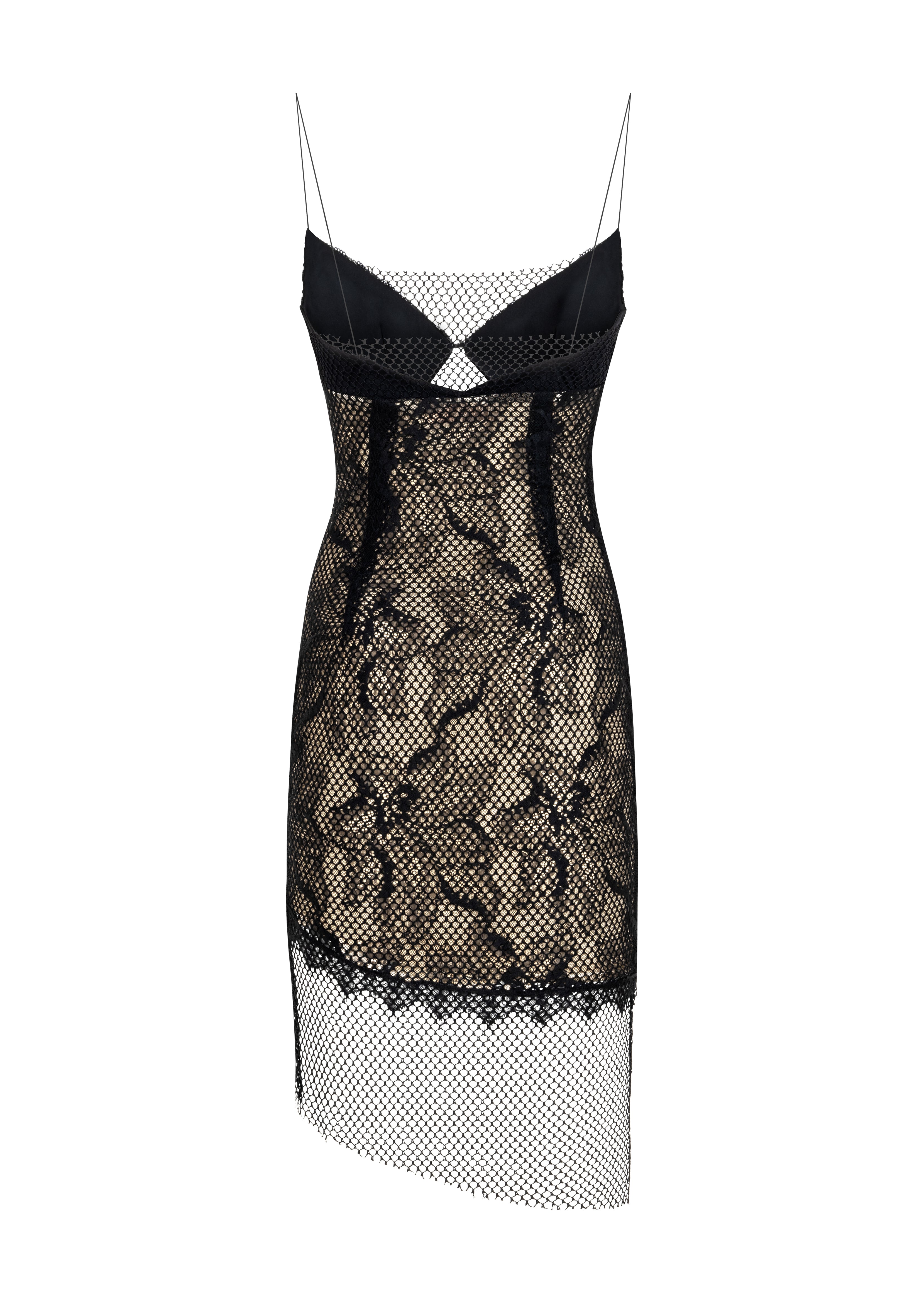 The “Nina” dress offers a modern touch with its delicate straps and lace details, and its sheer design promises timeless elegance with its simple cut. Suitable for any special event, from evening receptions to cocktail parties, this dress is ready to dazzle with grace.