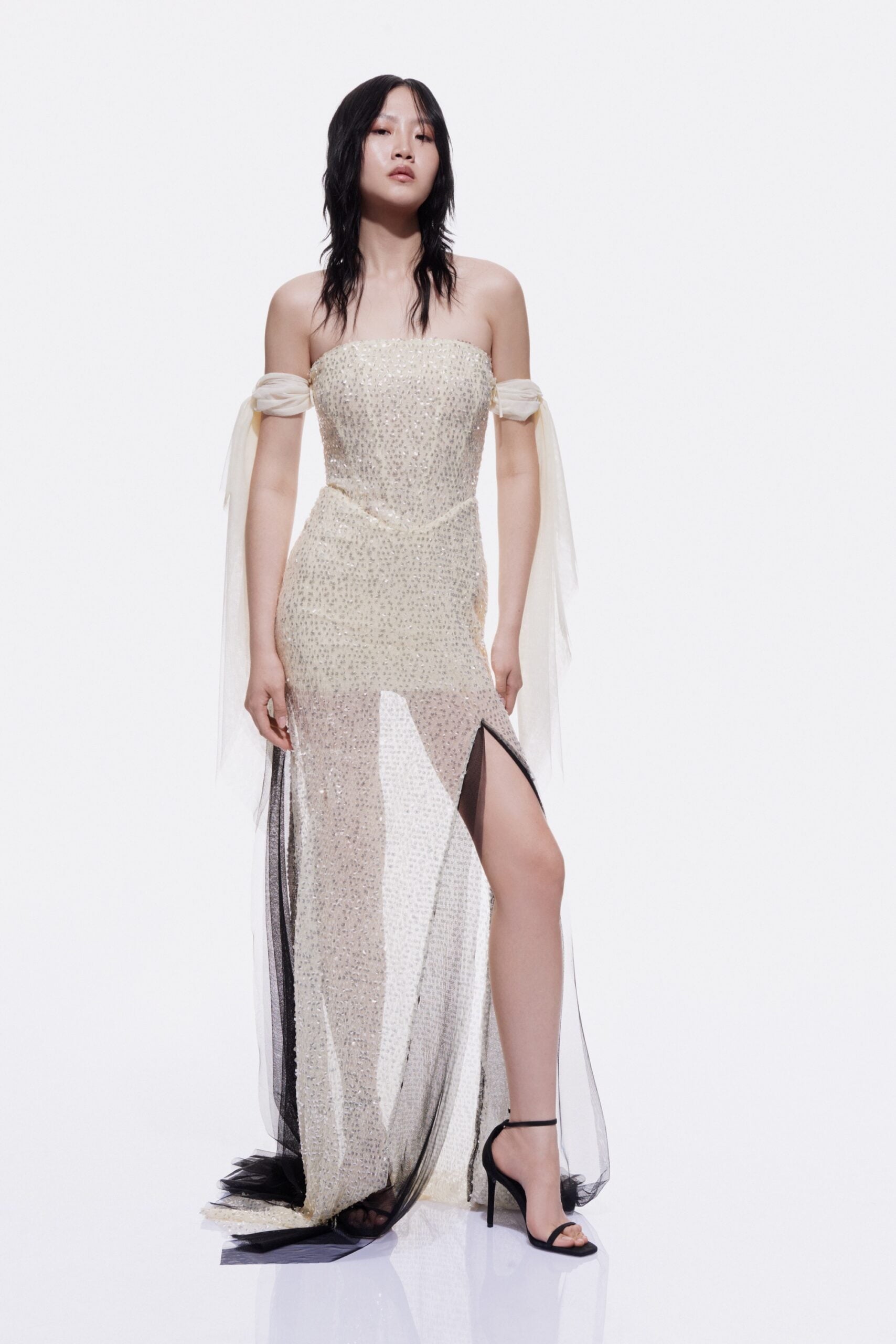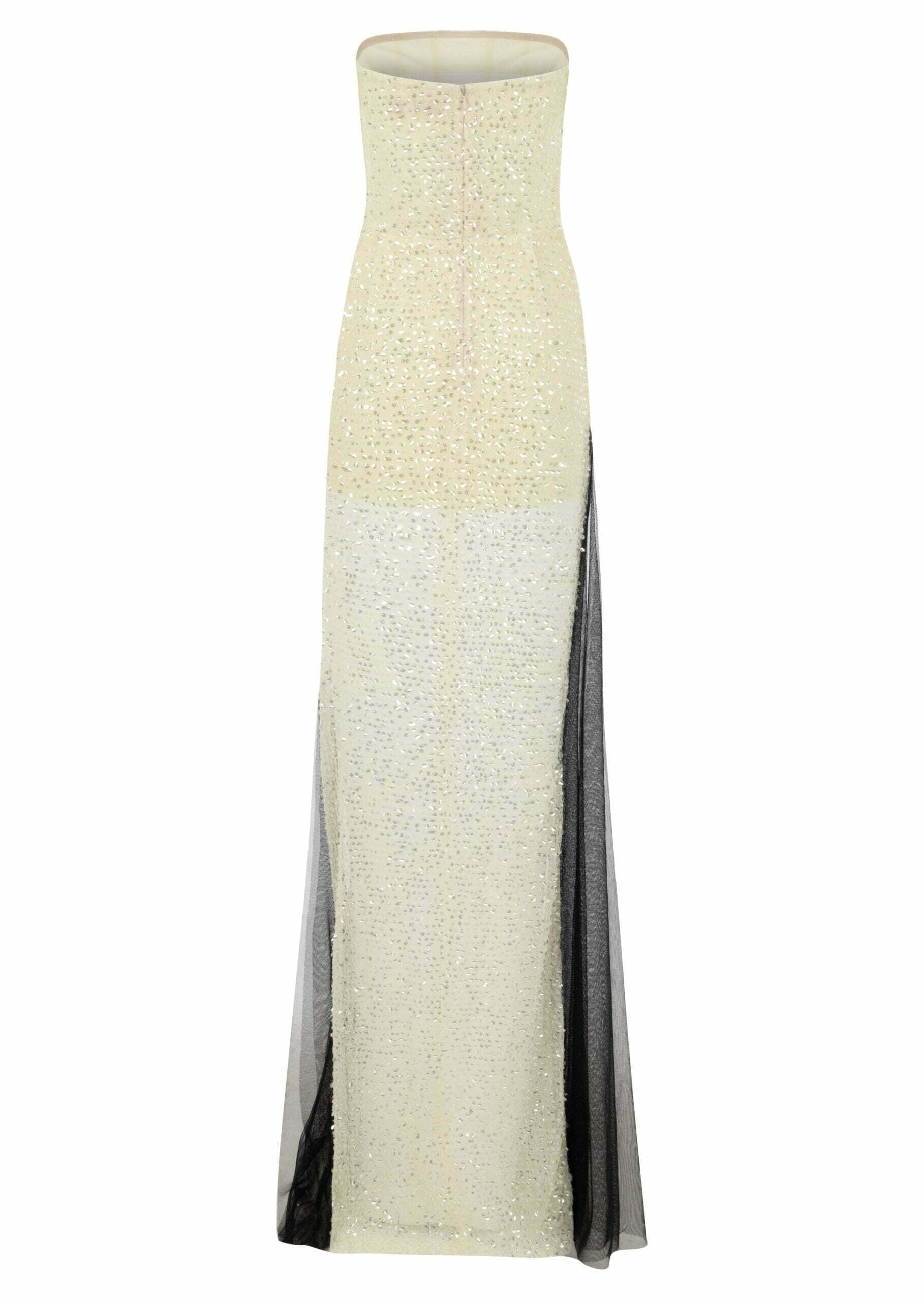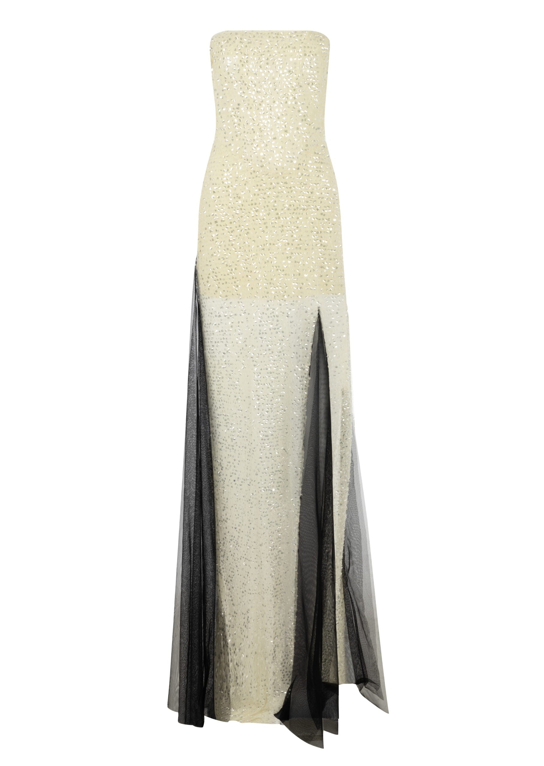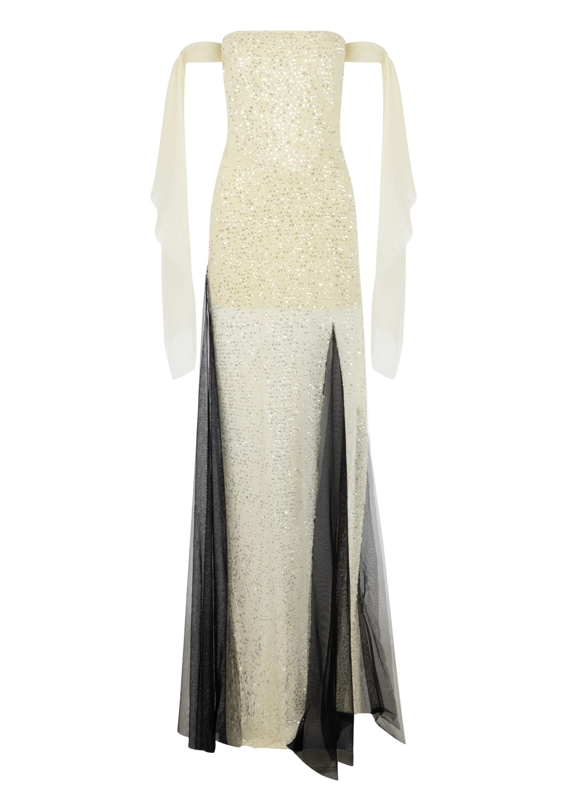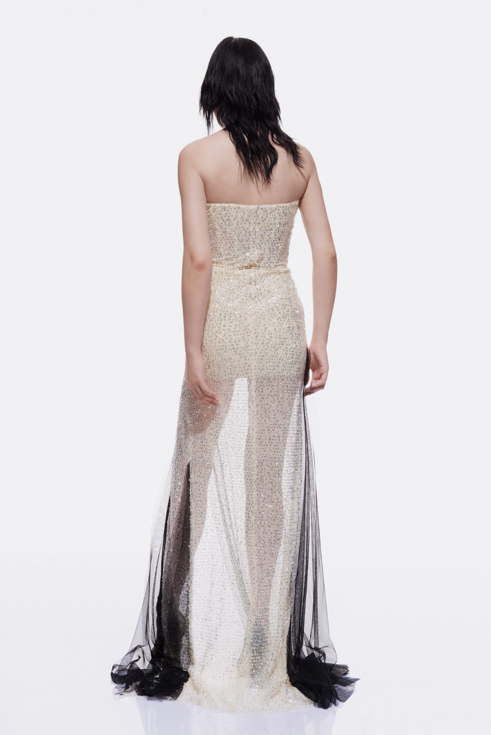 Sequin Strapless Tulle Dress with Detachable Sleeves