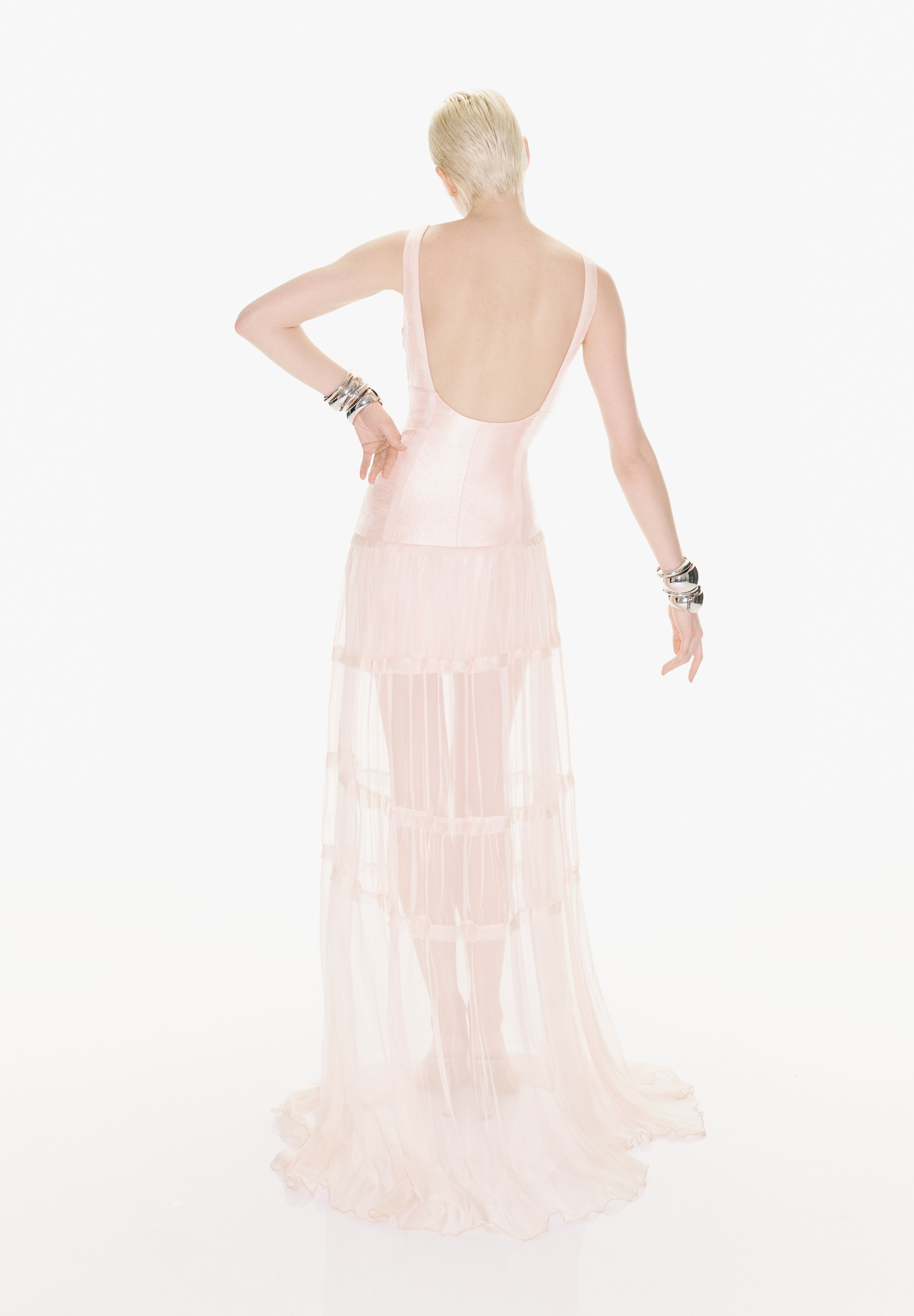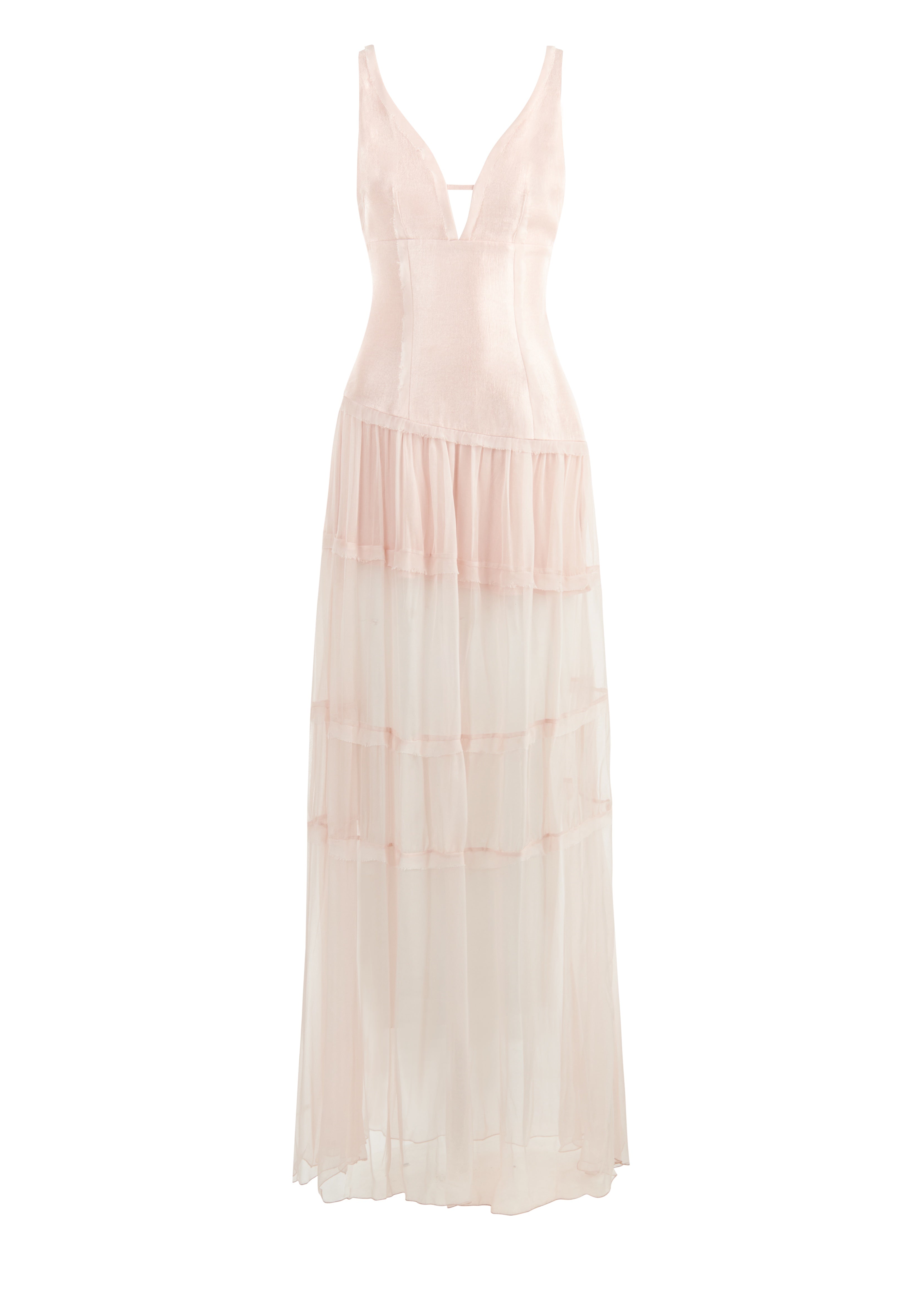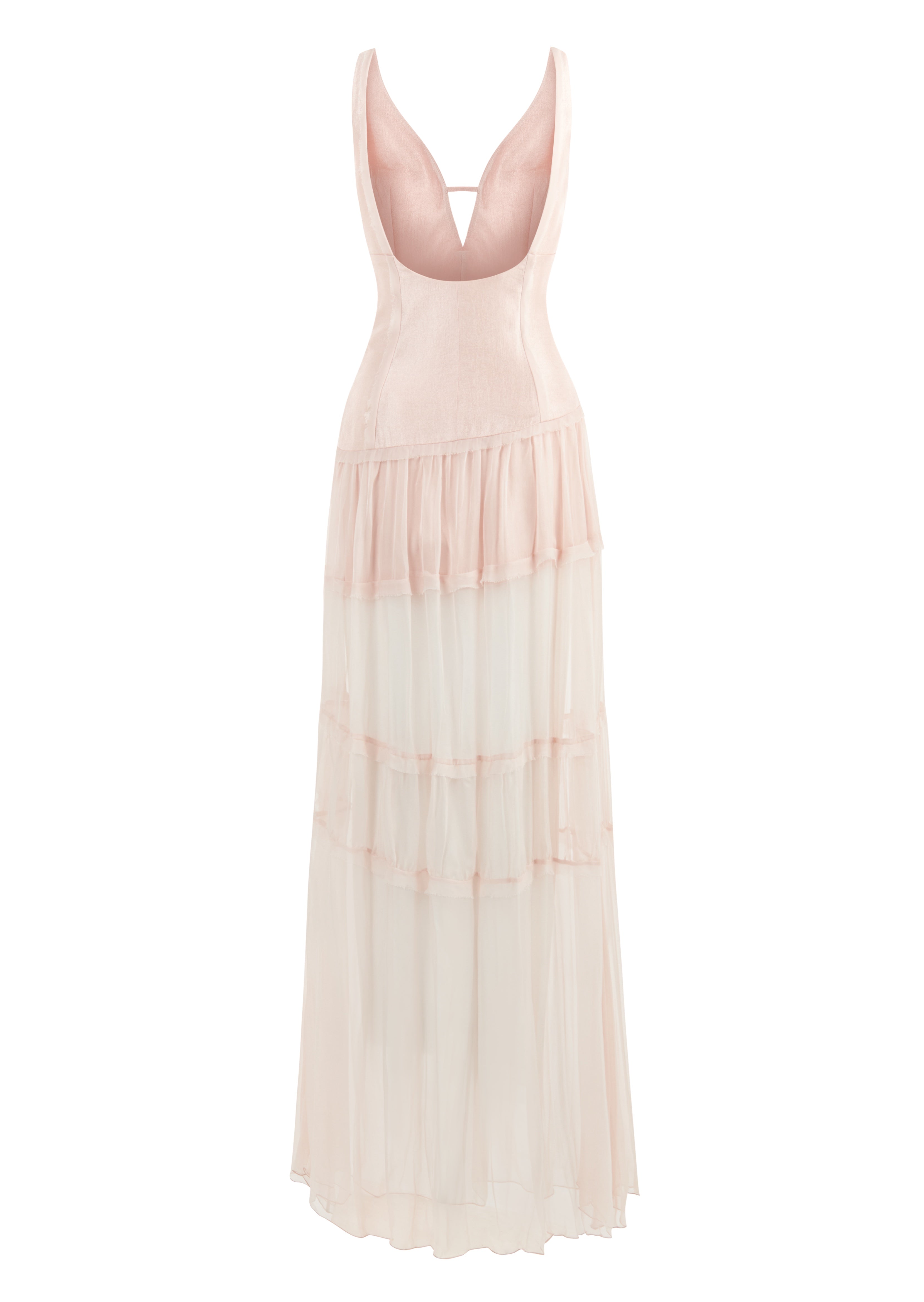 Inspired by Venus, the god of love and beauty in Roman mythology, the elegant silhouette of the dress accompanies invitations at sunset.